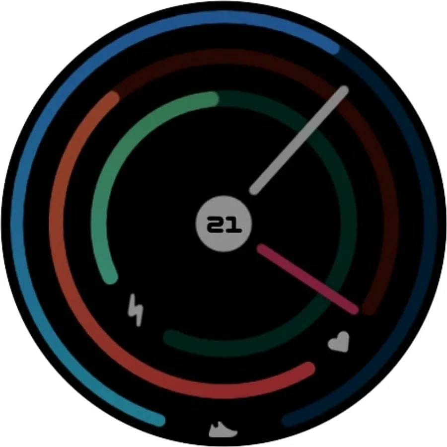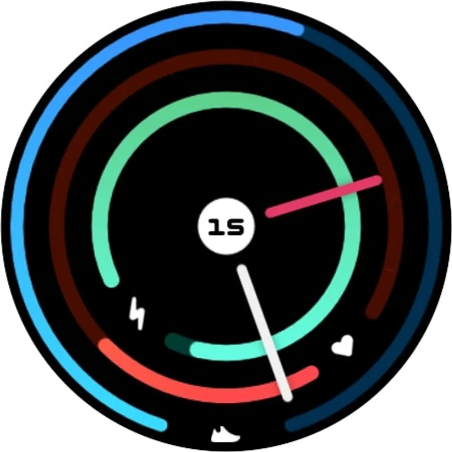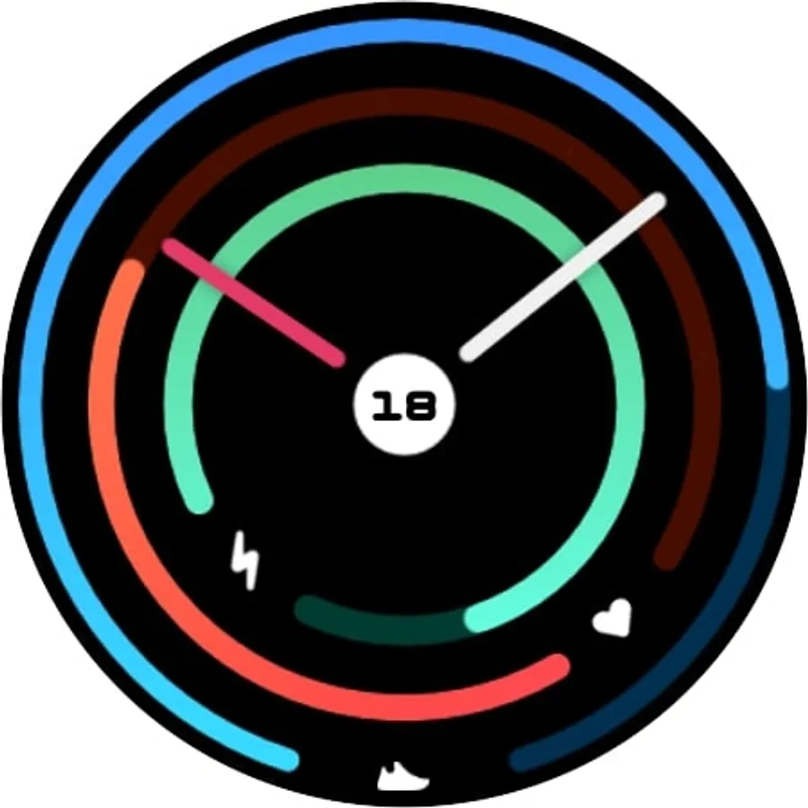 Concentric Analog is a simple analog watch face. In the center, there is the date and in the background, three circular bars represent respectively the steps (full at 10.000 steps), the heartbeat (full at 220 BPM), and the remaining battery. Over the date, there is a shortcut to the calendar. Another one to the battery status on the lightning and there is a custom shortcut over the shoe area. The Always On Display mode mirrors the standard mode.