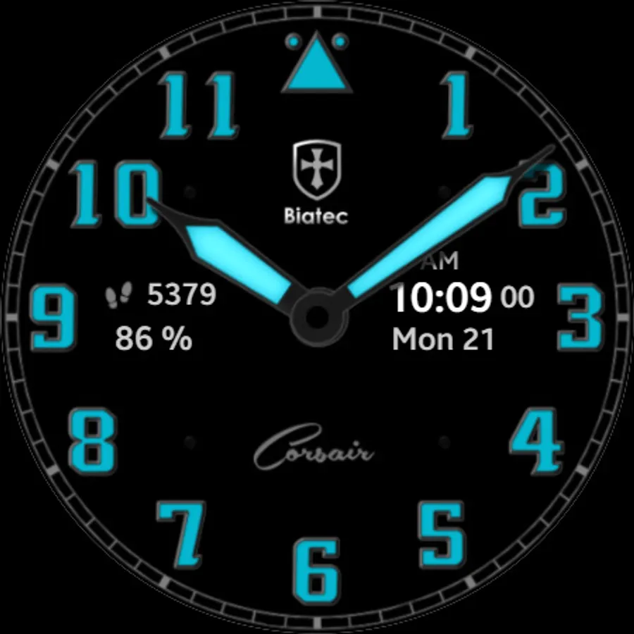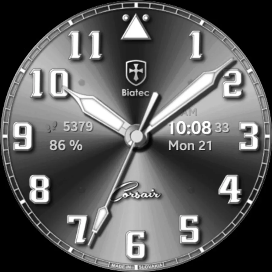 This watch face is composed as an original digital version of a real mechanical timepiece. You have a very exclusive chance to wear the true impression of a real Biatec mechanical watch at your smartwatch right now.