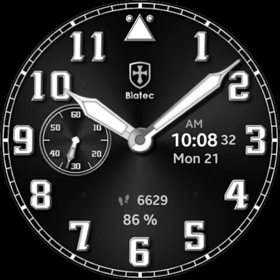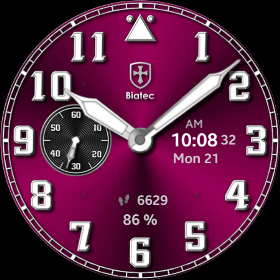 This watch face made is composed as an original digital version of a real mechanical timepiece. You have a very exclusive chance to wear the true impression of a real Biatec mechanical watch at your smartwatch right now.