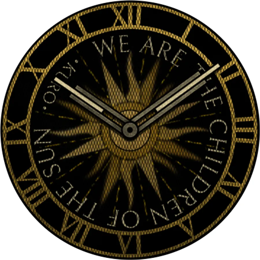 A sun rotate with flamming and radiant rays in the center of the watchface while the title text rotate around the clock.