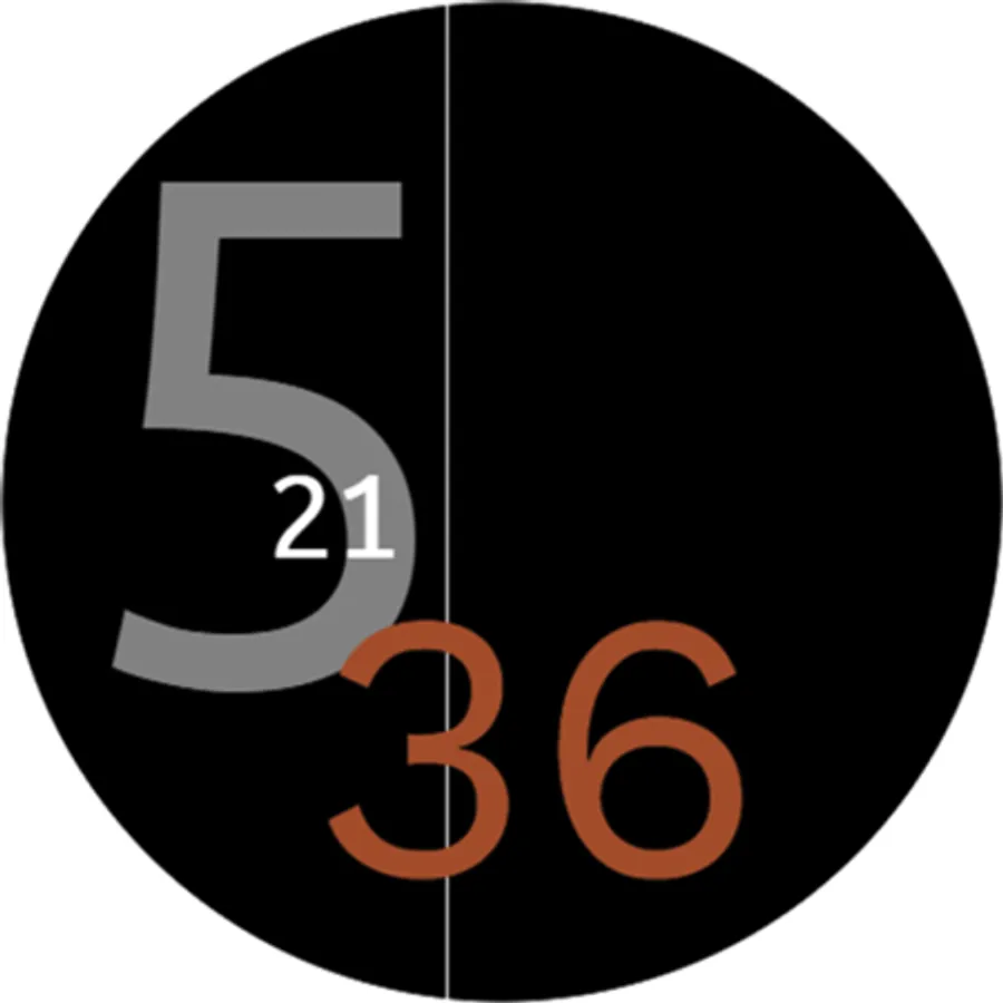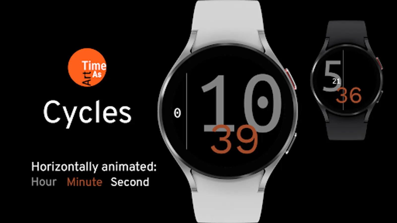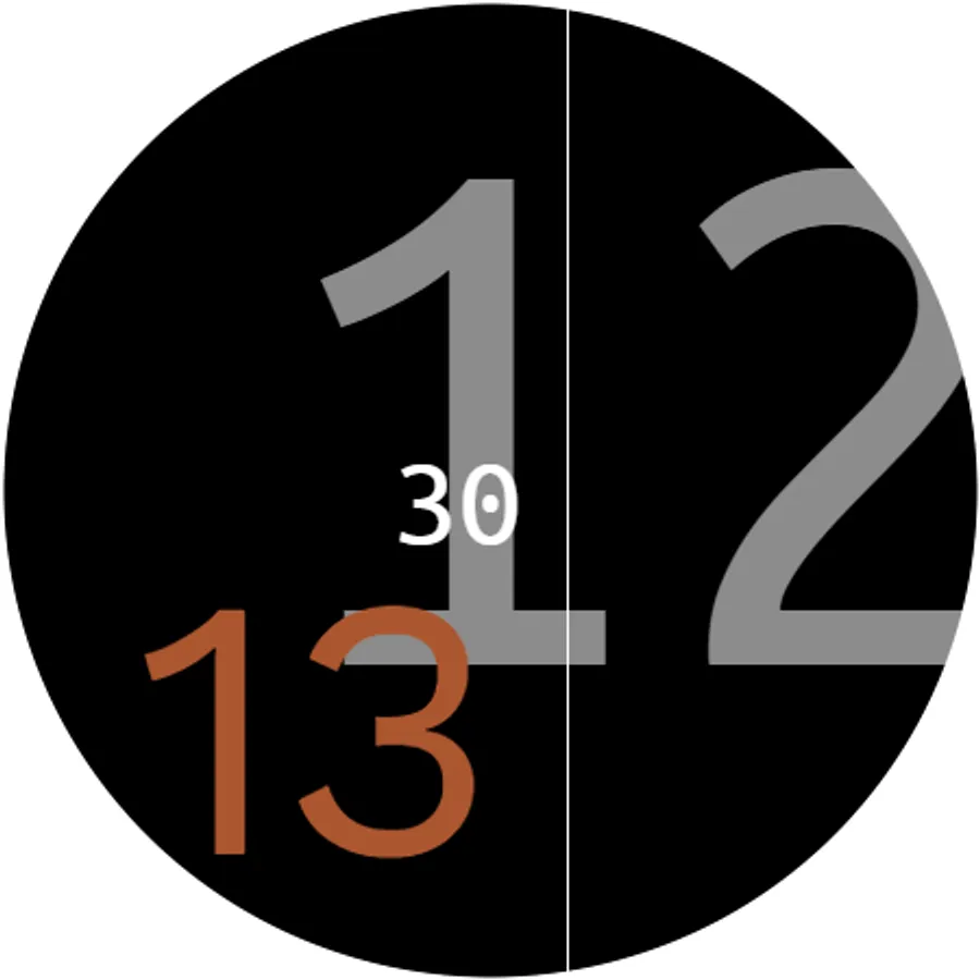 - Horizontally forward cycling numbers (H, M, S) dynamically change position/constellation according to time
