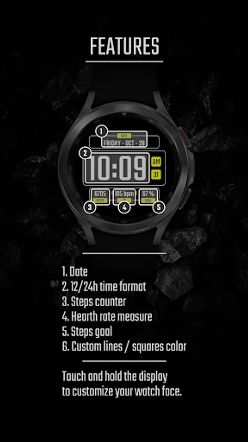 DADAM50 Digital Watch Face is a digital watch face for Wear OS smart watches created by Dadam watch faces.