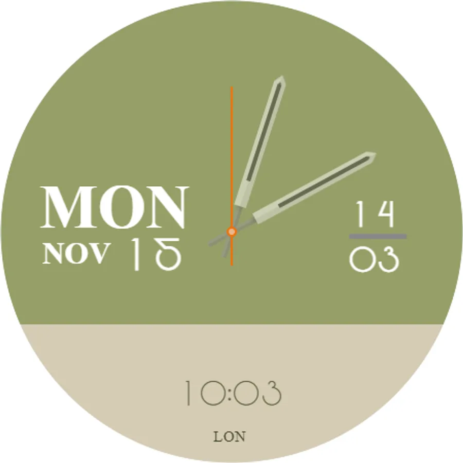 Customizable watch face with multiple colors and different unique watch hands to choose from. Try it out today.