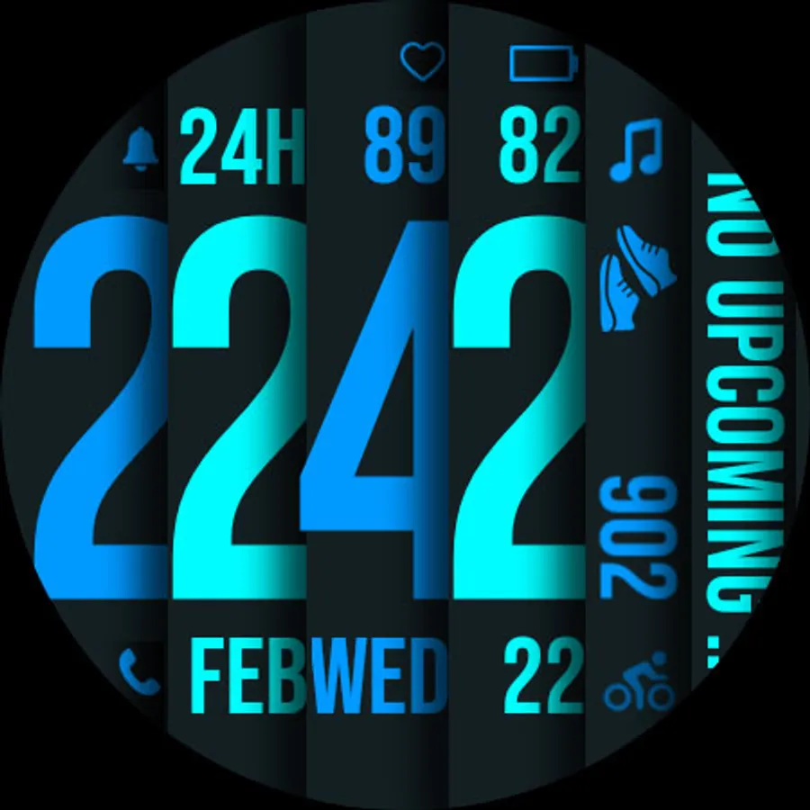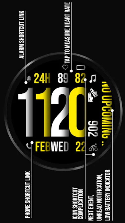 Dynamic information display. notification count, Next event and low battery indication display work based on priority.