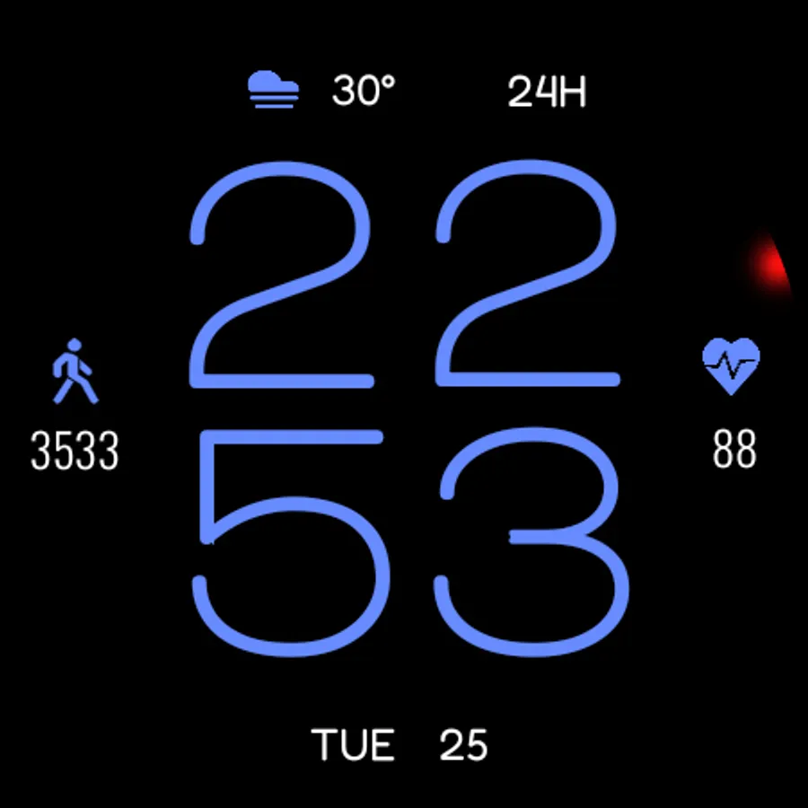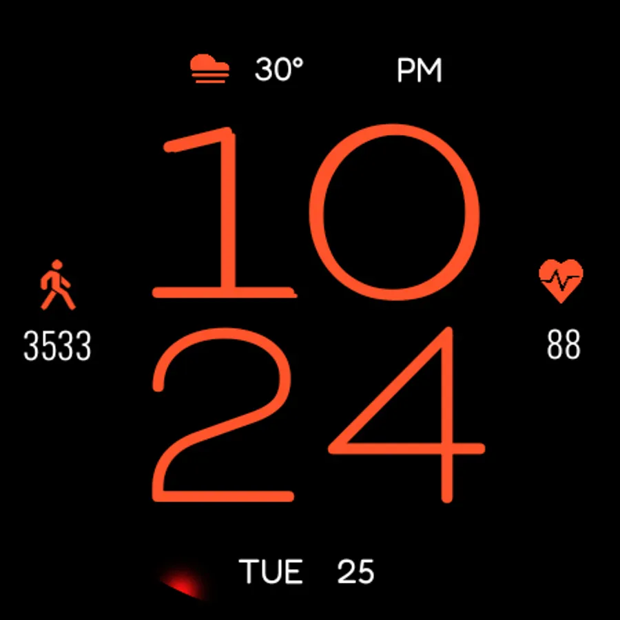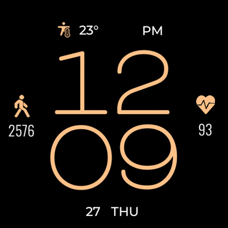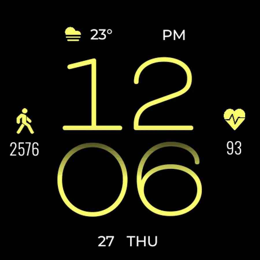 THE WATCH FACE FOLLOWS AND SUPPORTS BOTH 12/24H MODES AS SELECTED ON THE CONNECTED PHONE. THE HOURS IN 12H MODE ARE WITHOUT LEADING ZERO AND IN 24H MODE WITH ZERO. TO SELECT THE MODE CHANGE TO 12/24 HOUR MODE FROM TIME SETTINGS ON YOUR CONNECTED PHONE.