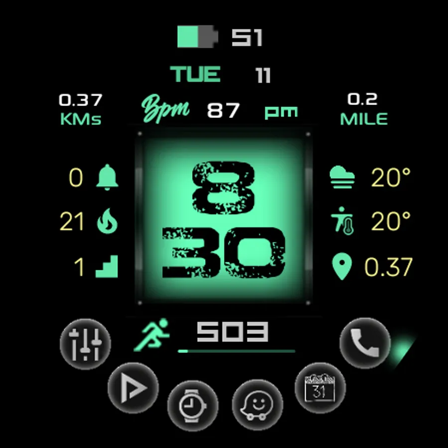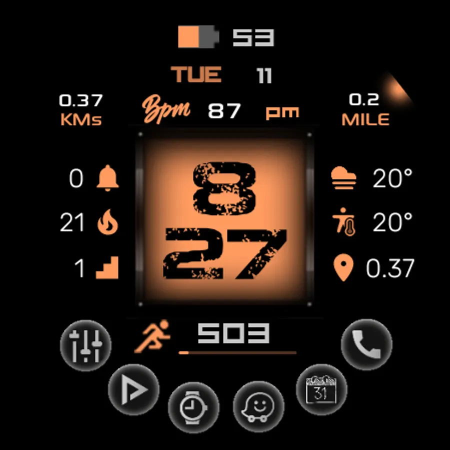 This watch face supports wear OS devices and has user customizable 6 x Complications. To have Additional missing Complications on Your Samsung smart watch like Floors, Moon Position, Calories, etc which will then be available to any watch face in which any developer has added user customizable complications you can then use them as shown in the screen previews of this watch face please. Also they will work on every watch face you already have.