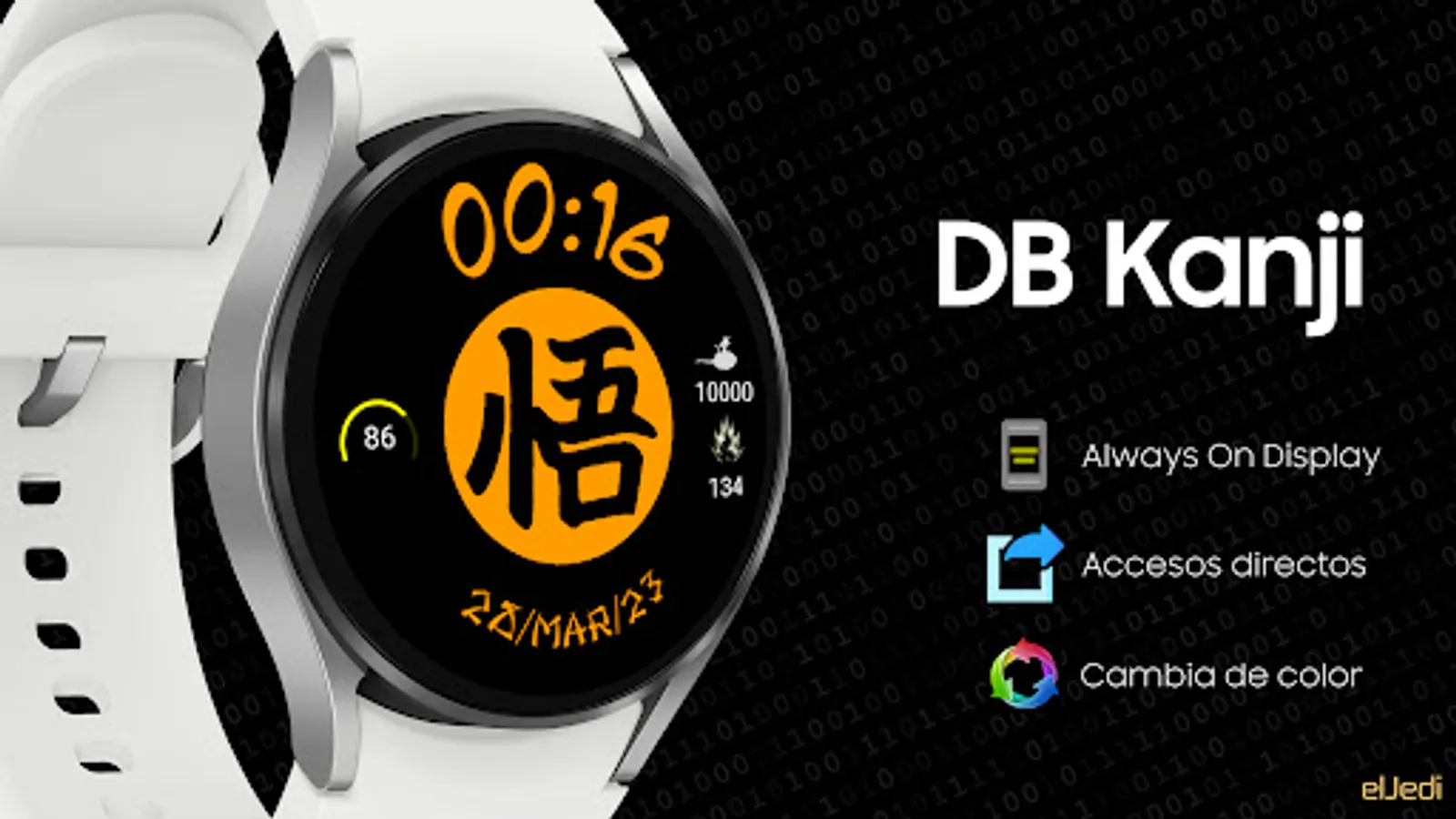 Digital watch face with color change, shortcuts and AOd for Wear Os