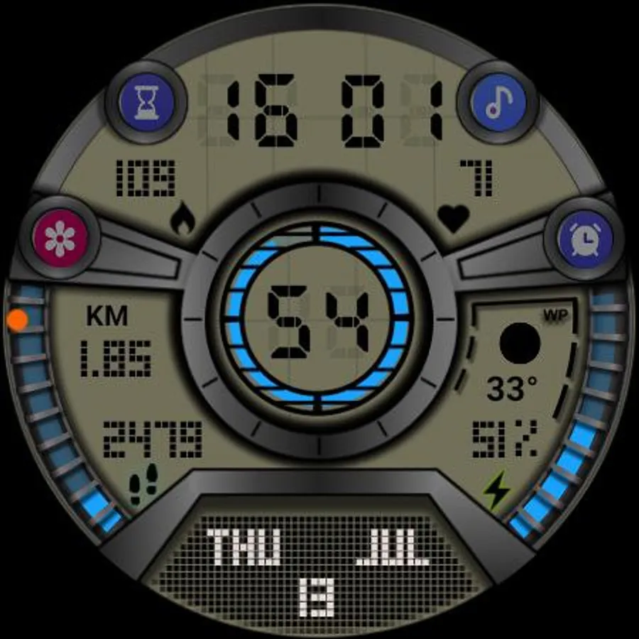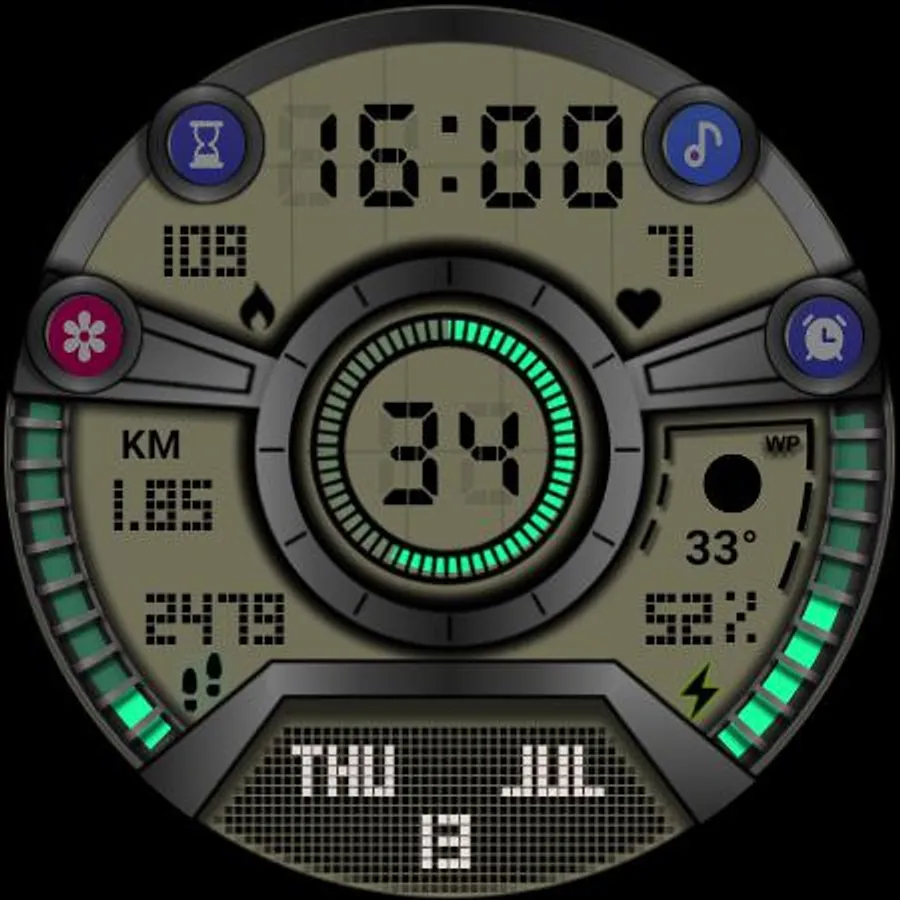 - Automatic 10-minute interval heart rate measurement and 15k step target are implemented on the watch face.