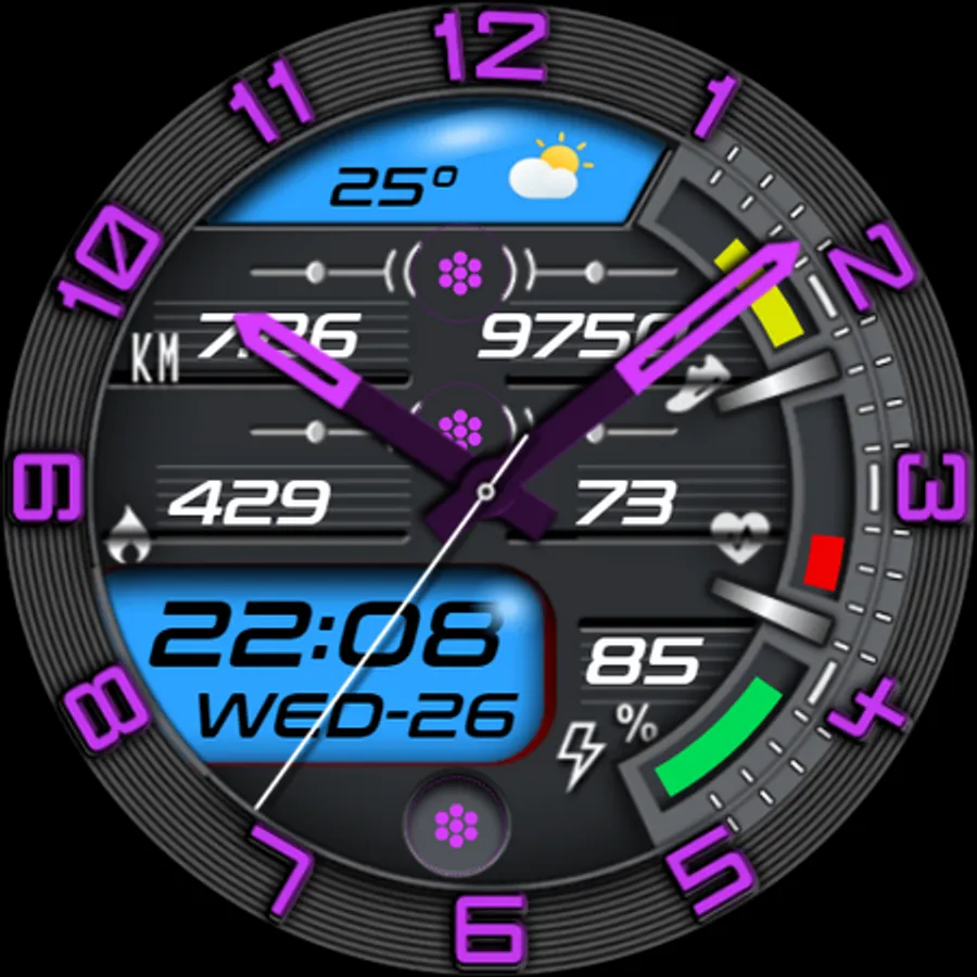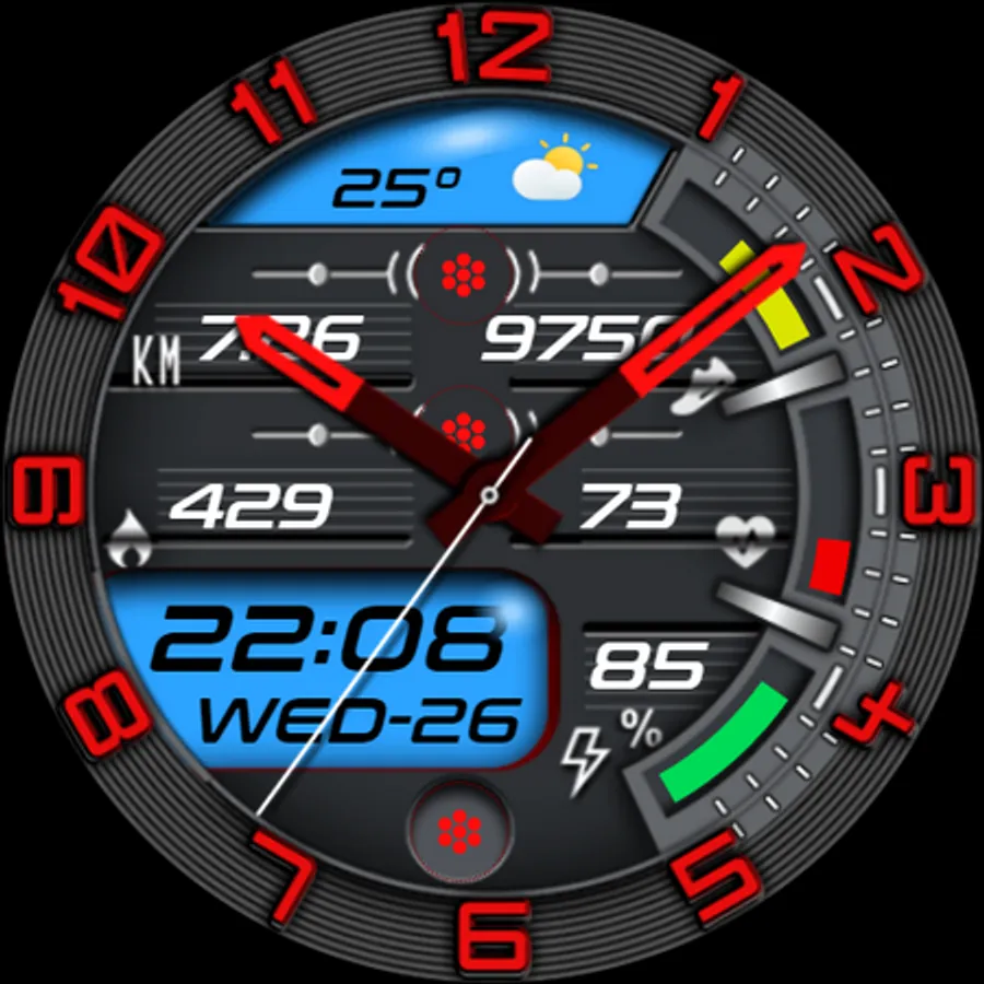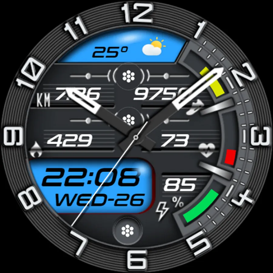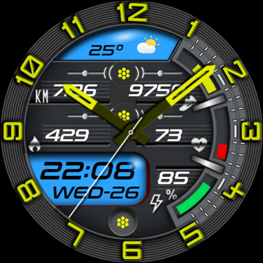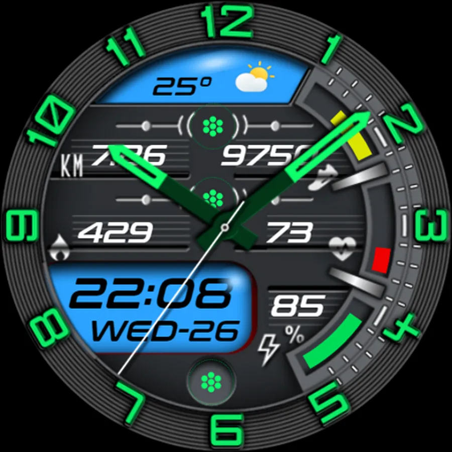 - Automatic 30-minute interval heart rate measurement and 15k step target are implemented on the watch face.
