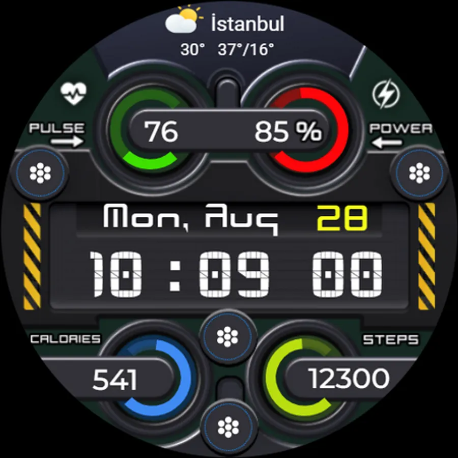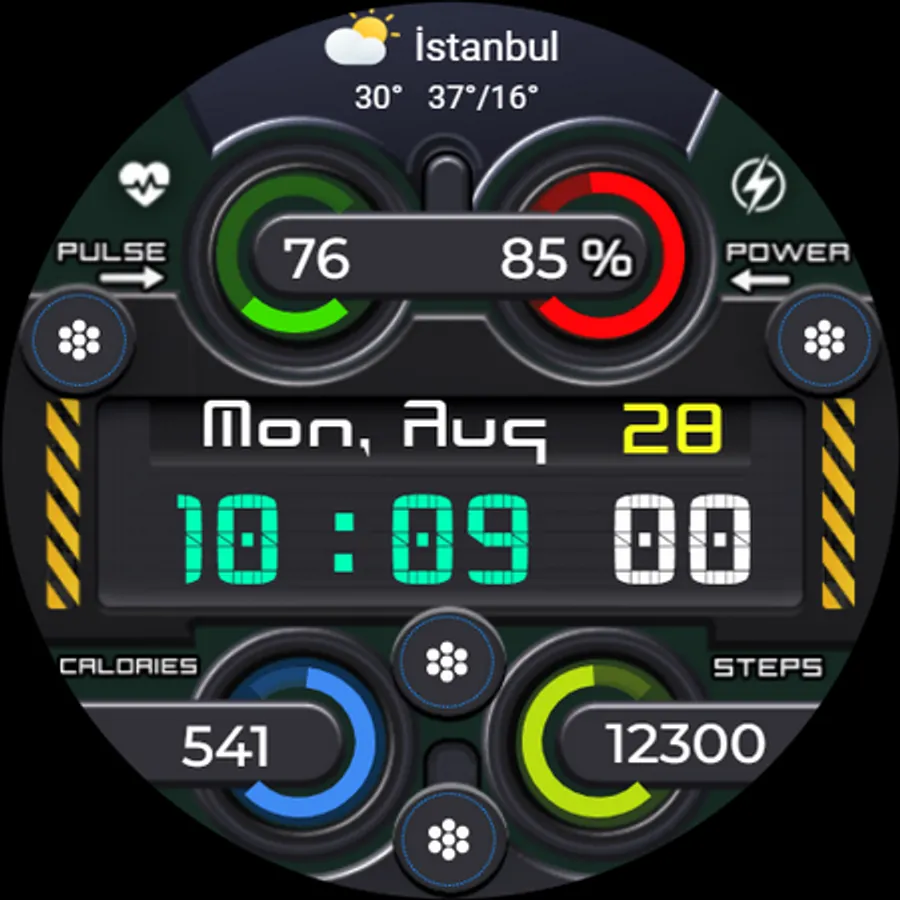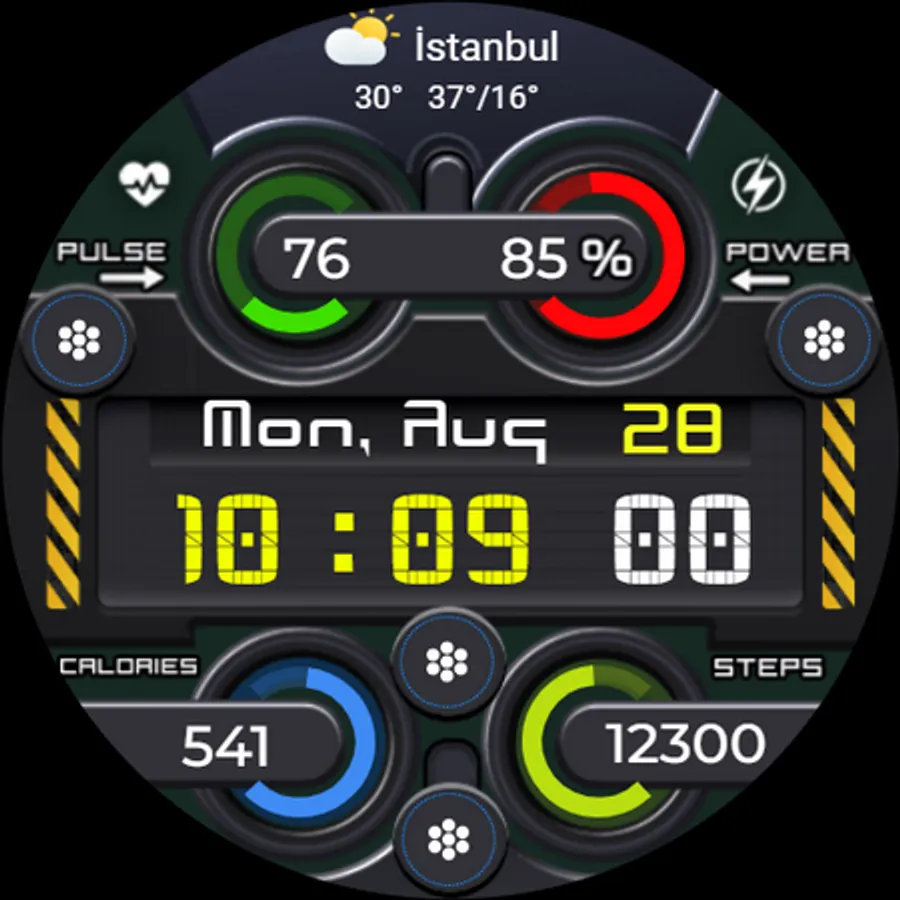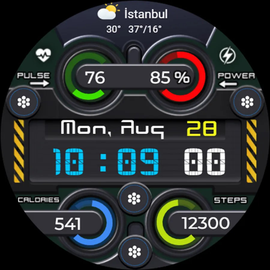 - Automatic 1 hour interval heart rate measurement and 15k step target are implemented on the watch face.
