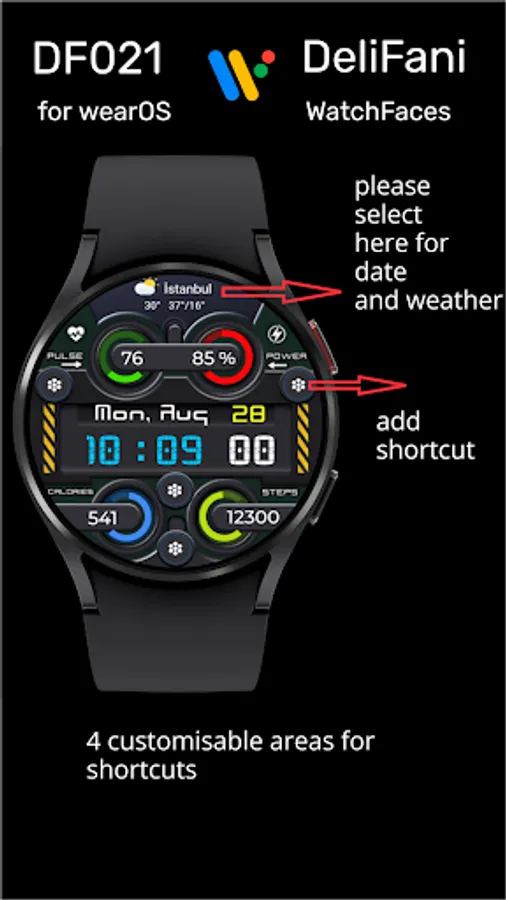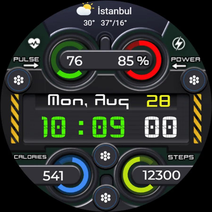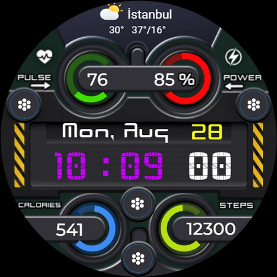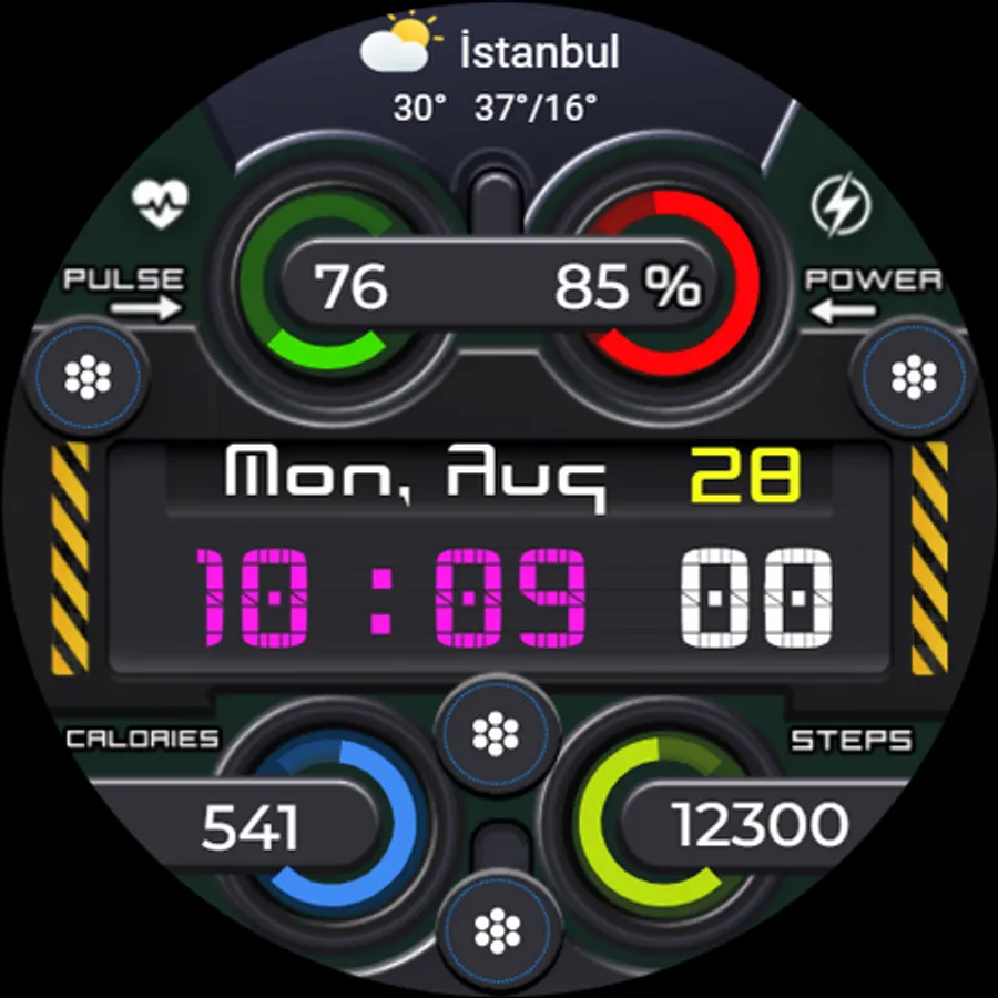 - Automatic 1 hour interval heart rate measurement and 15k step target are implemented on the watch face.