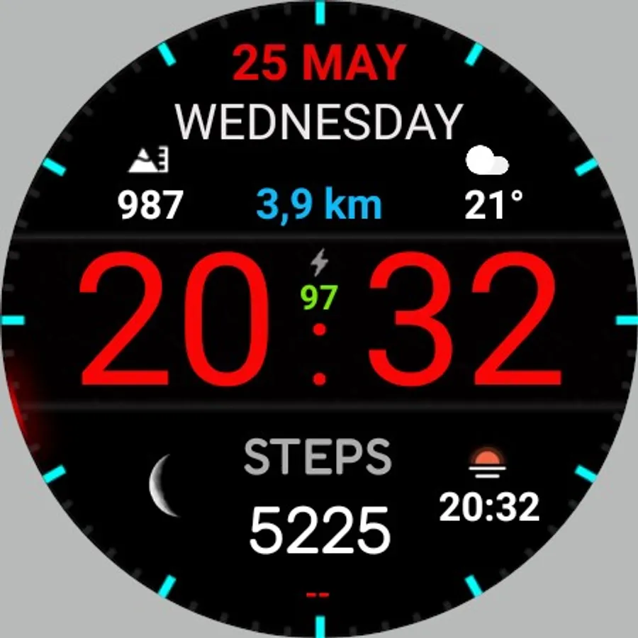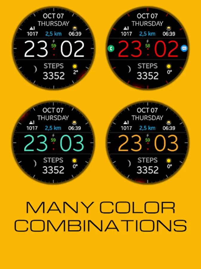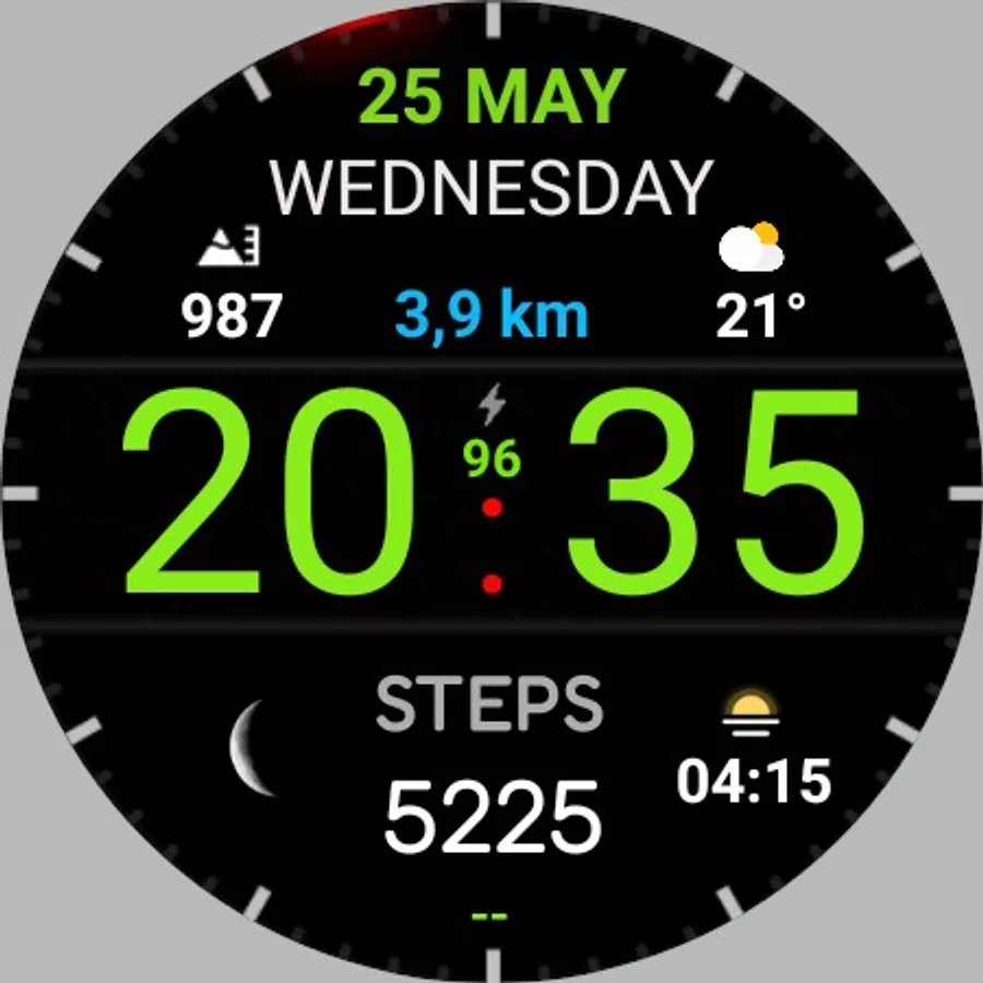 Very economical and practical, inform and digital watchface with color, background settings and many useful features.
