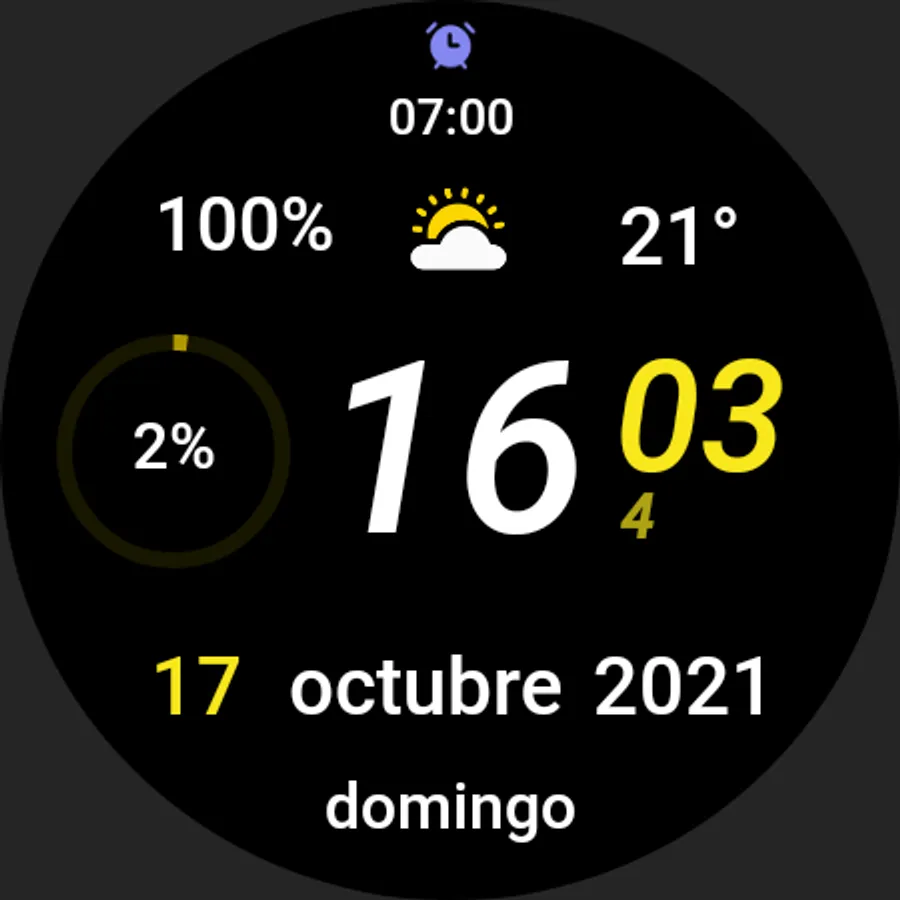 This Watch Face has minimalistic Allways On Display to save battery life and 4 compilations.