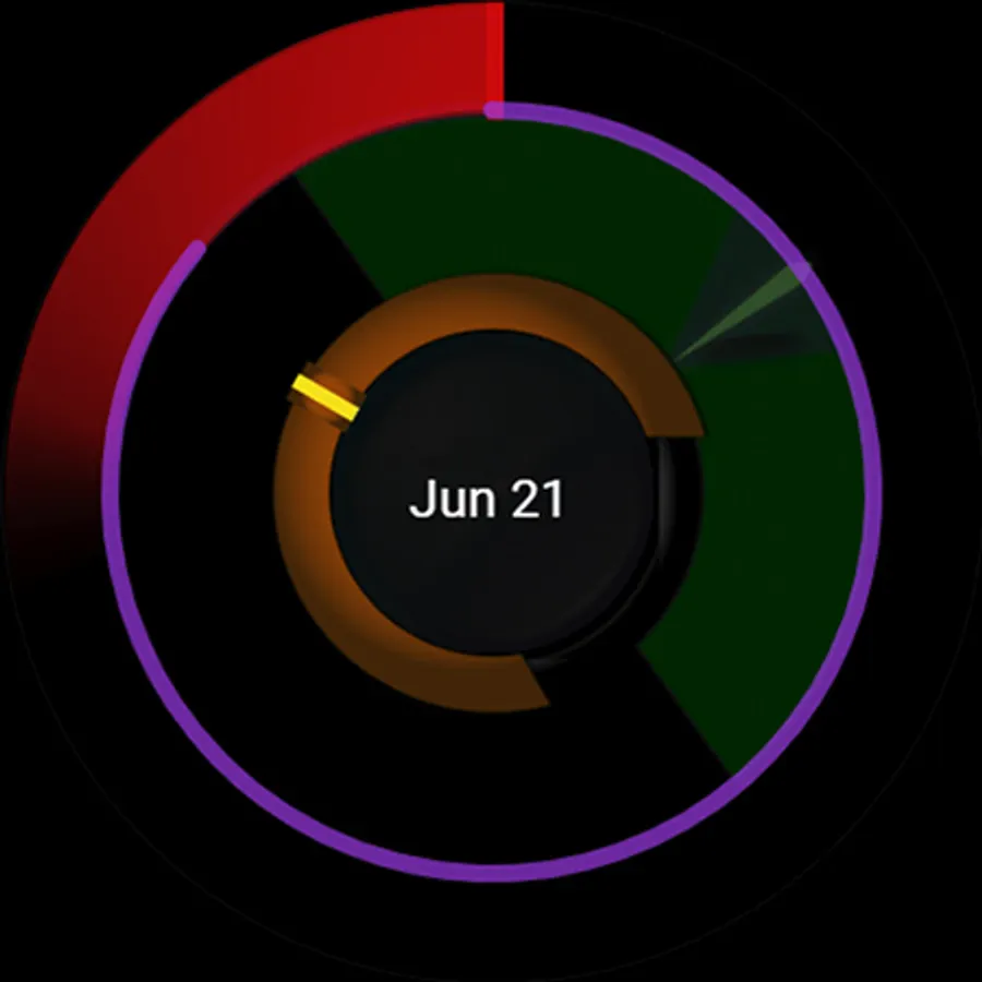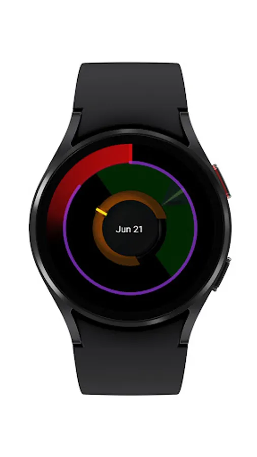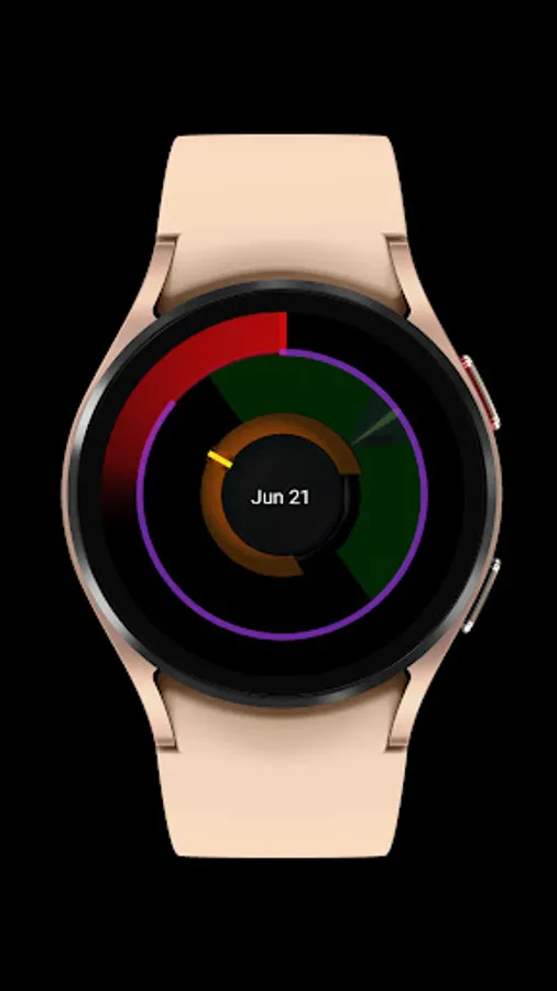 -inner and Middle rings indicate hour and minutes sa they would point to the positions on a traditional watch.