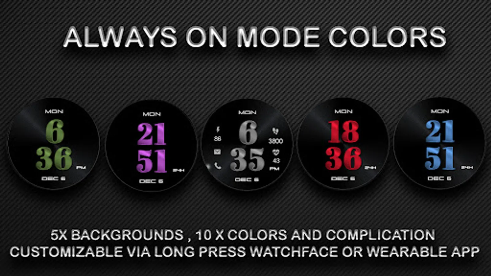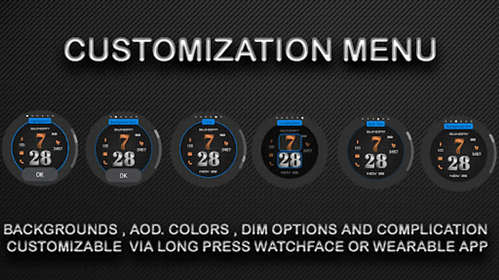 2. add 2x customizable shortcuts,dim Always on display and main screen menu background text display except the hours and minutes.