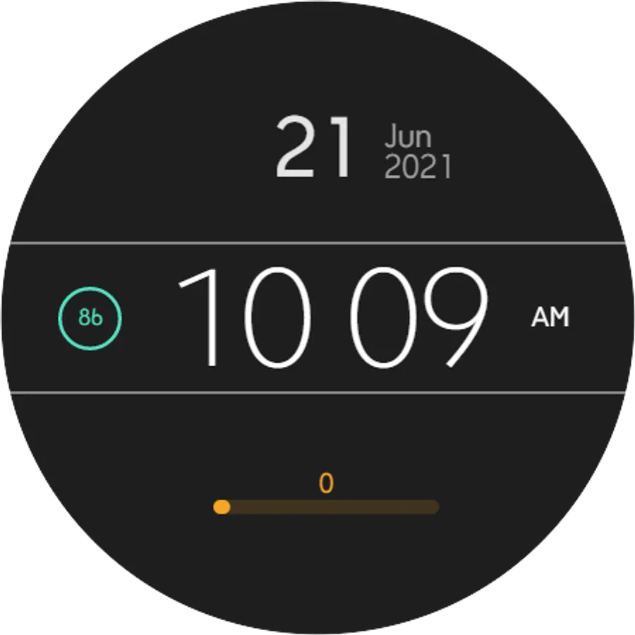 Tap on the design element of this virtual watch face to respectively open the calendar, alarm, music player or battery setting app!