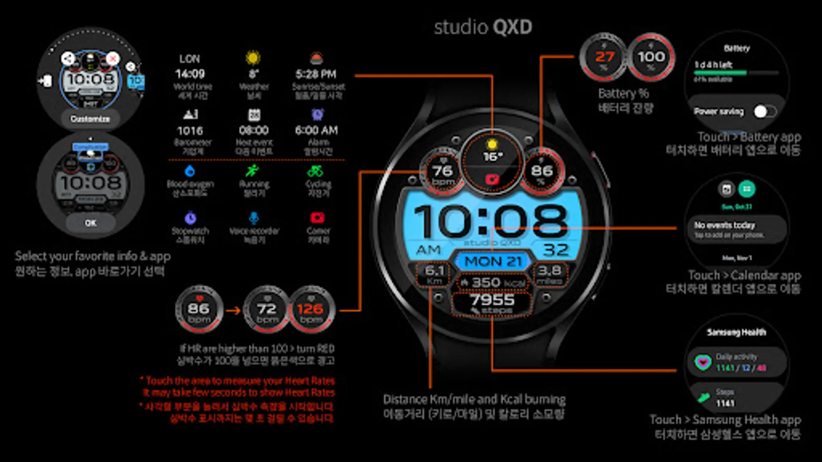 - Customizable information text and icon such as weather, next event, barometer, alarm, etc.