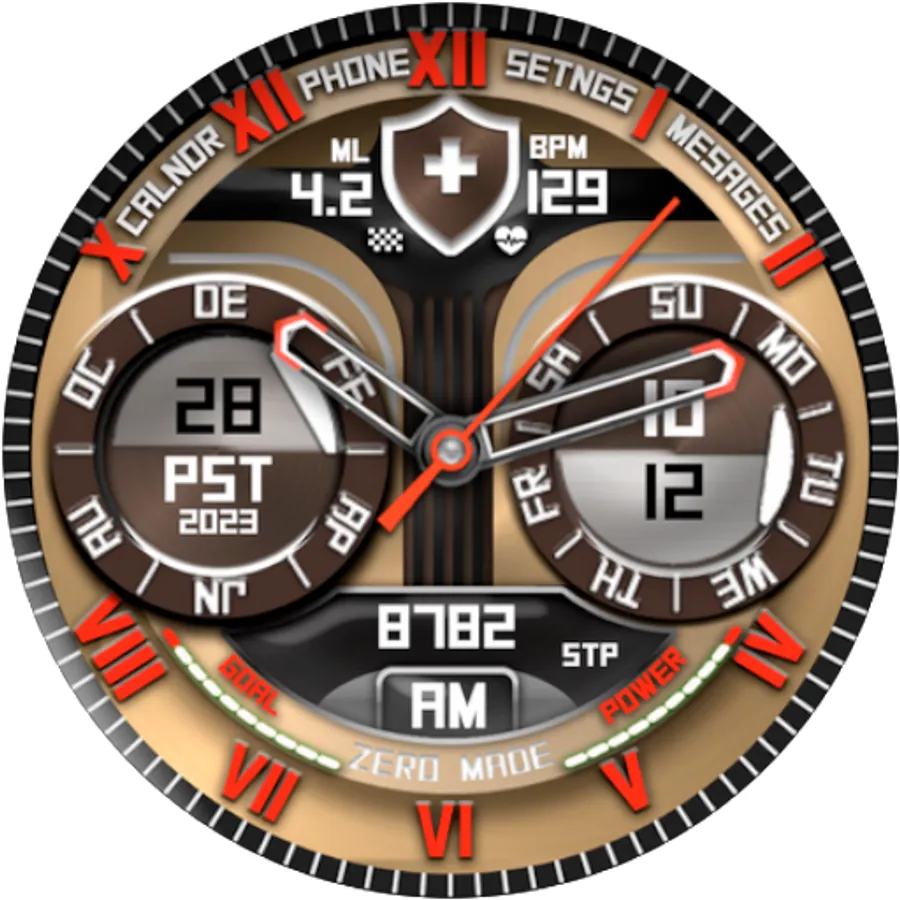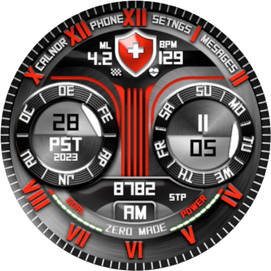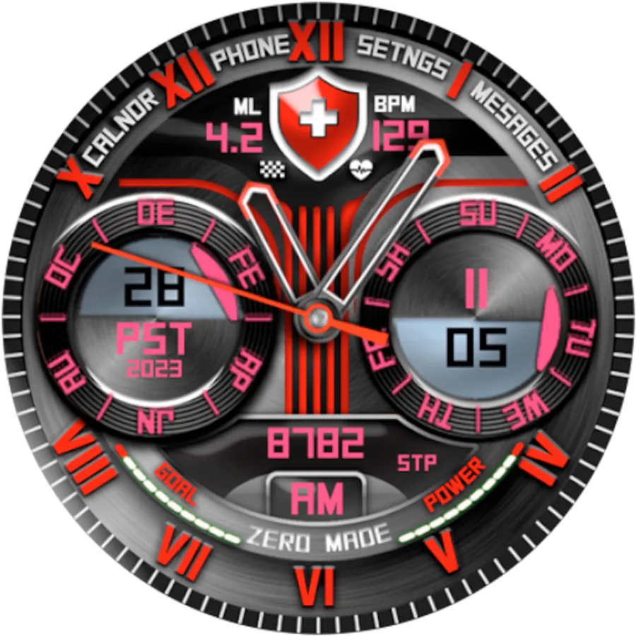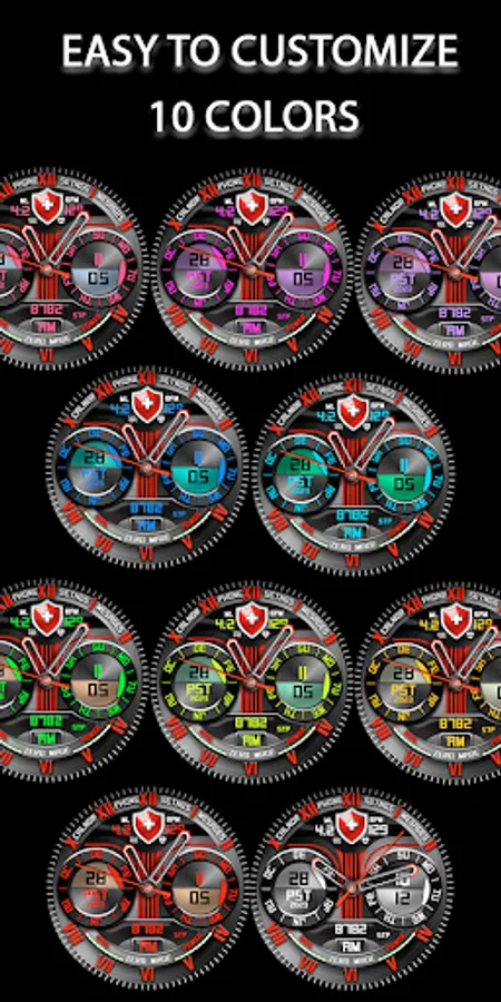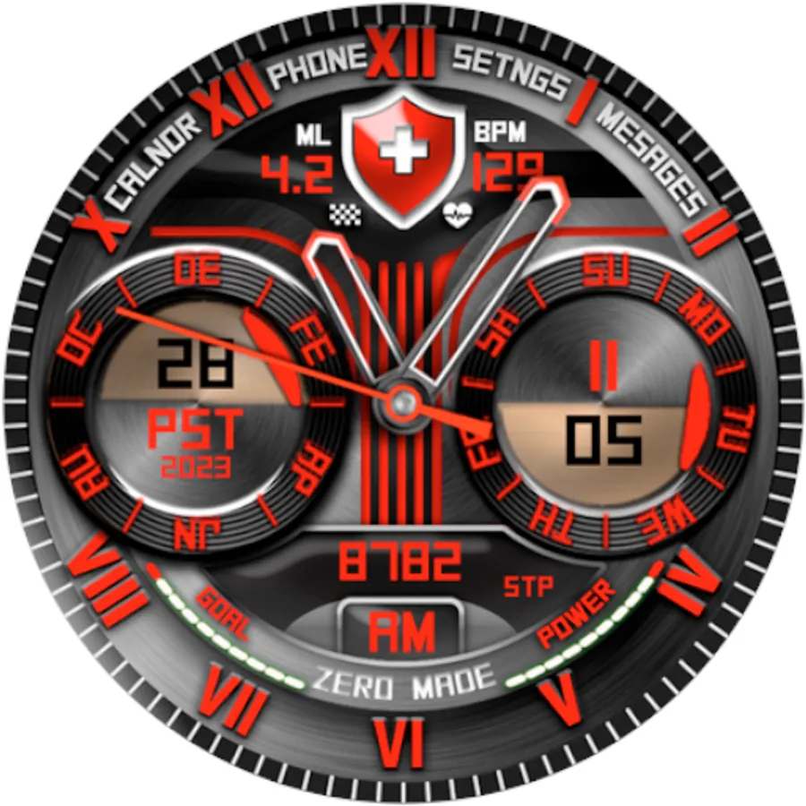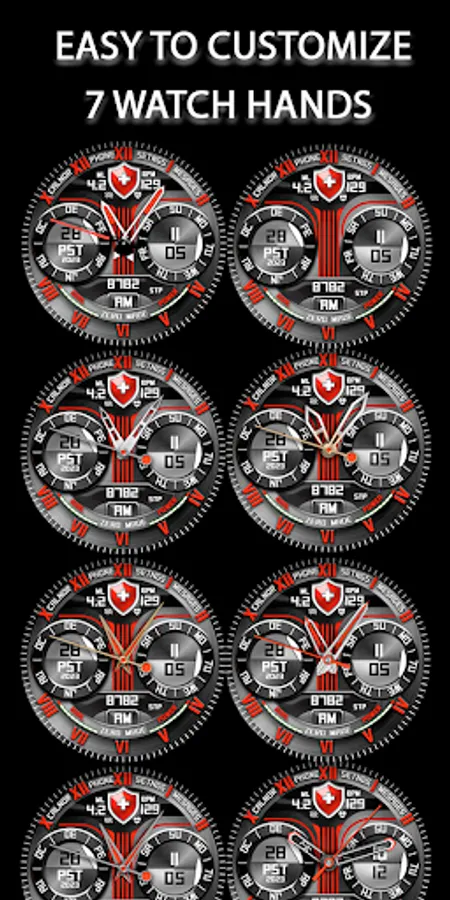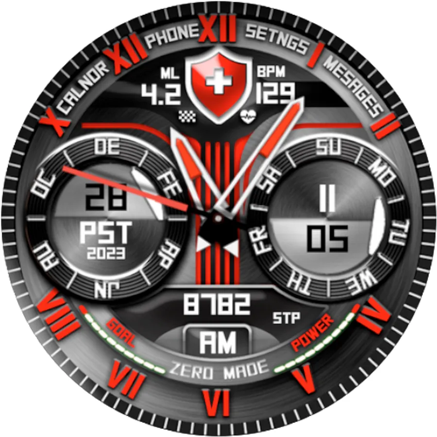 To activate the setting, press and hold your finger on the display. In the menu that appears, you can select for the Normal mode: chronograph case, set of hands, color scheme of numbers (common for the Normal mode and AOD mode), for the AOD mode, you can select a set of watch hands.
