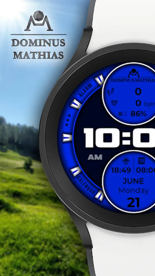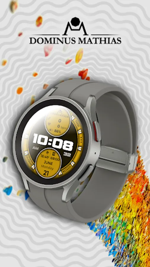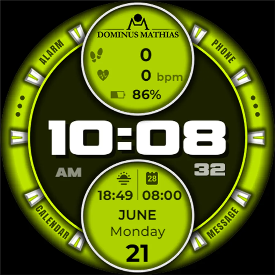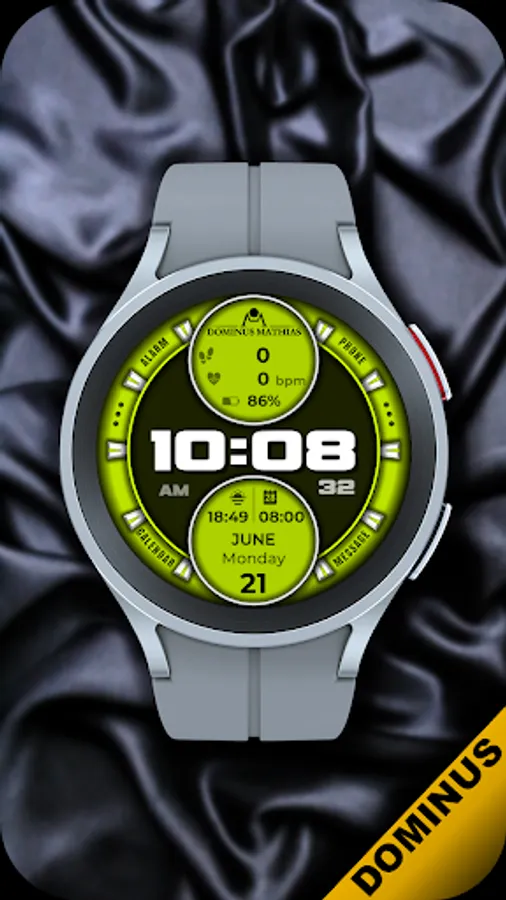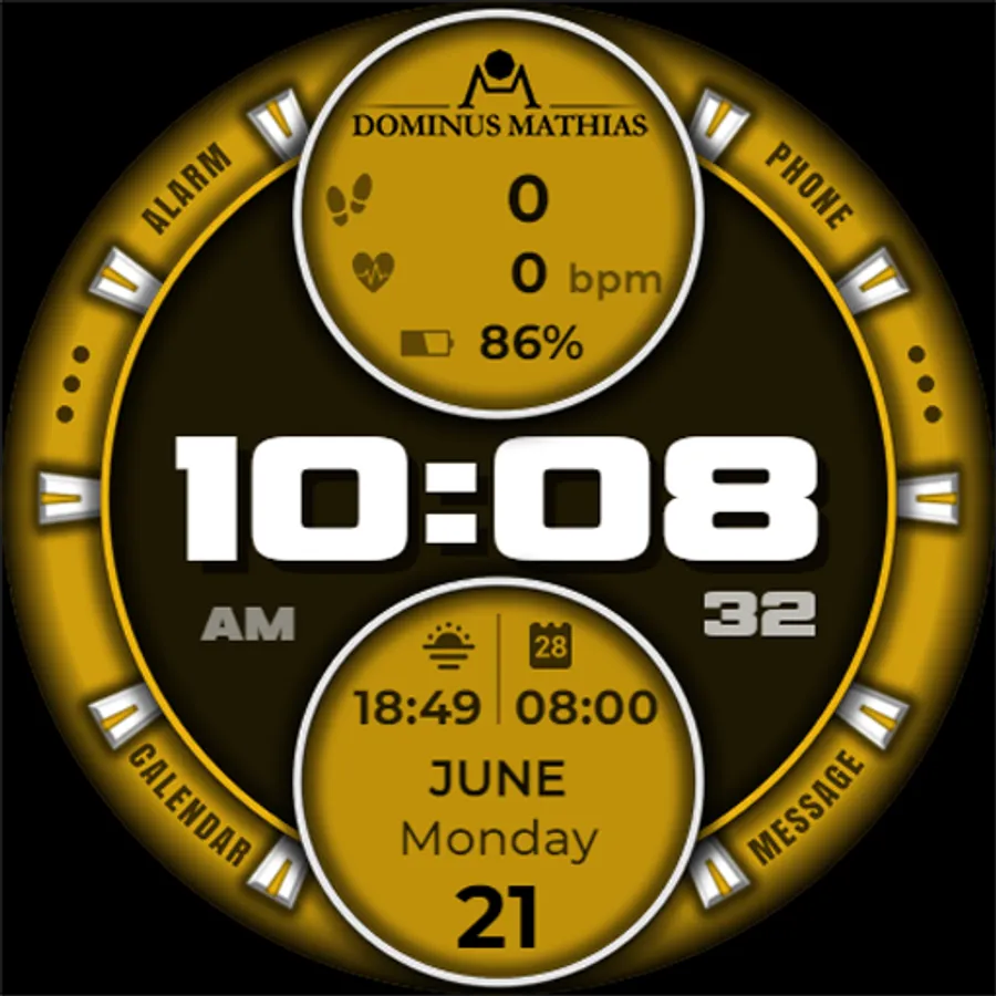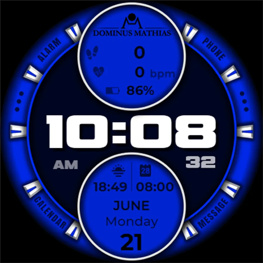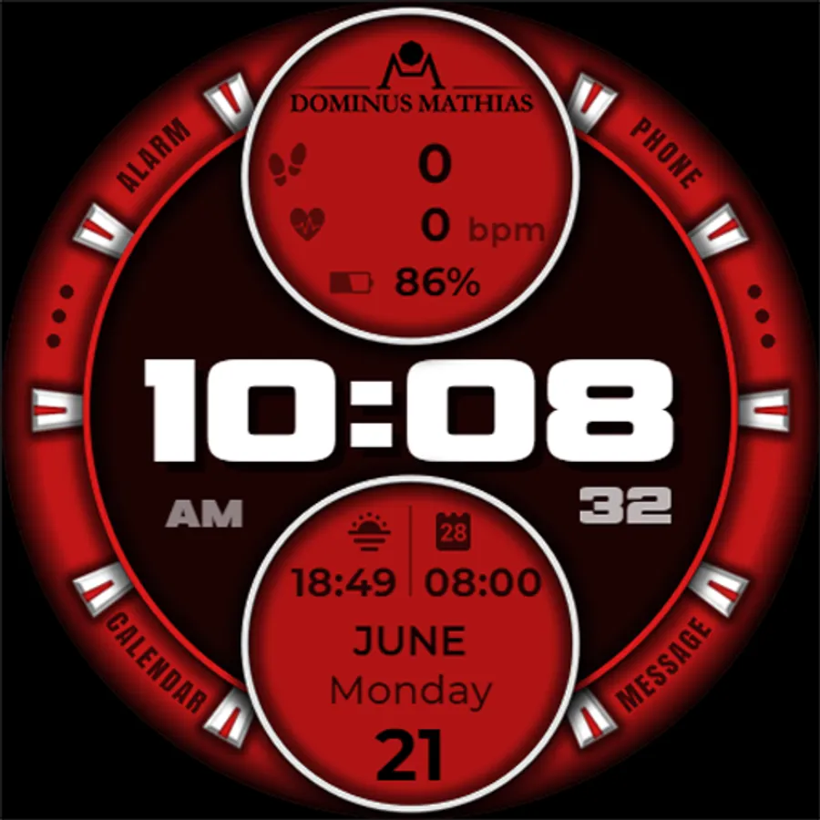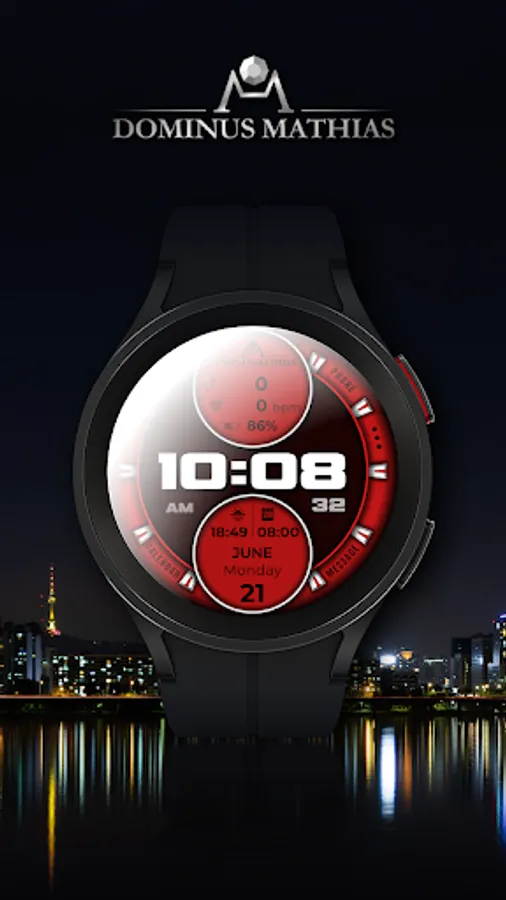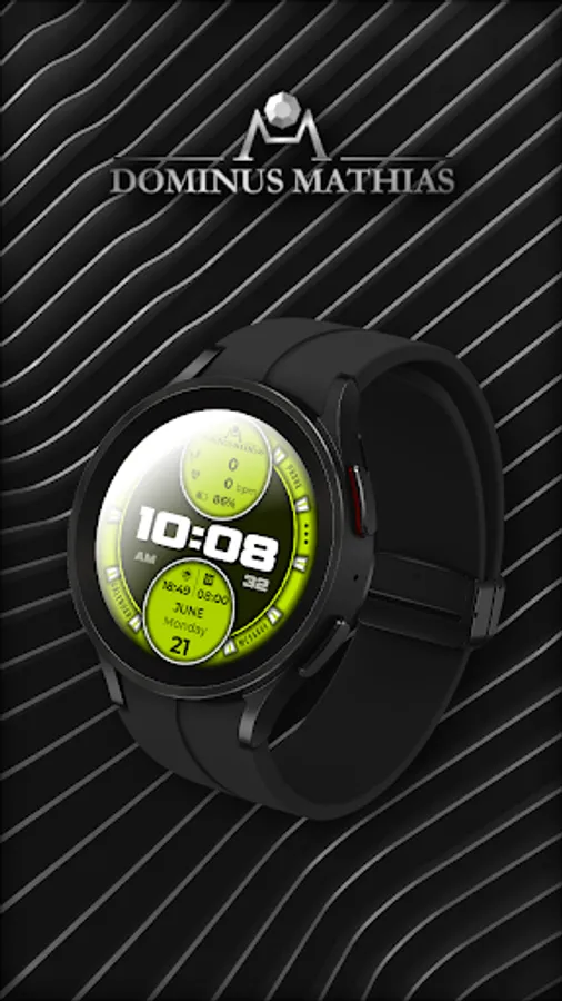 Unique designed watch face from Dominus Mathias for Wear OS. Enjoy the real power of this premium model. It contains all the most relevant complications as a time, date, health & fitness data.