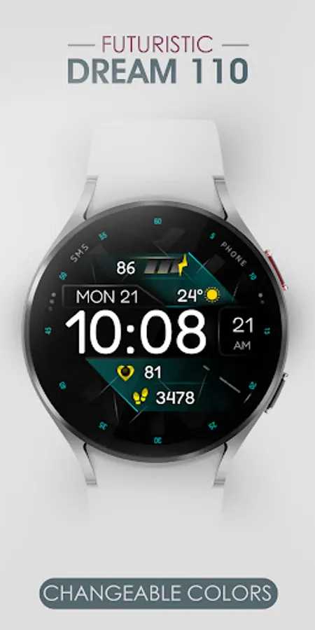 Dream 110 - Modern Futuristic Digital Watch Face for Wear OS by Monkey's Dream
