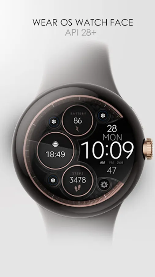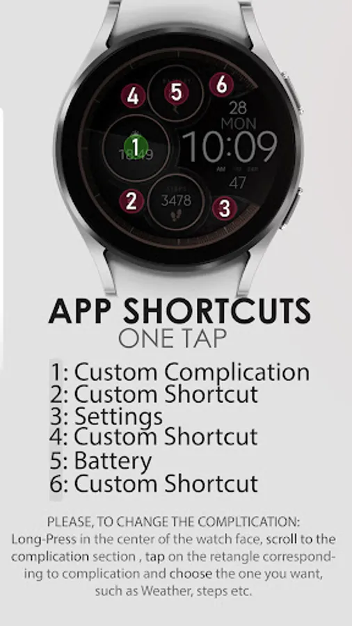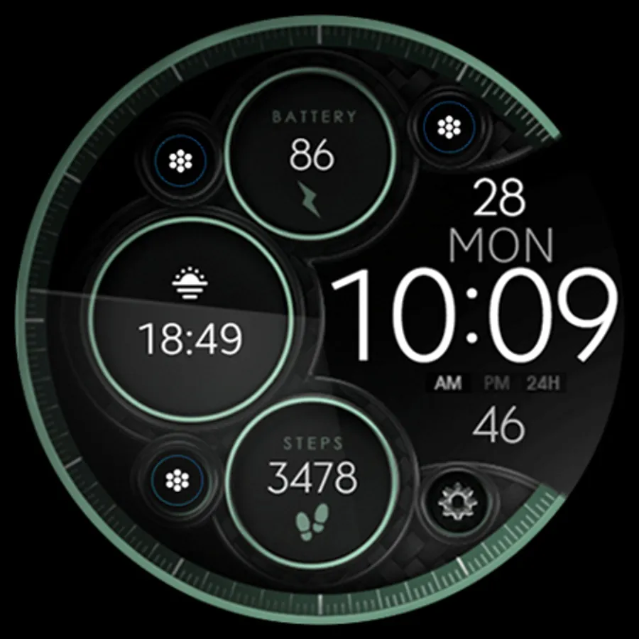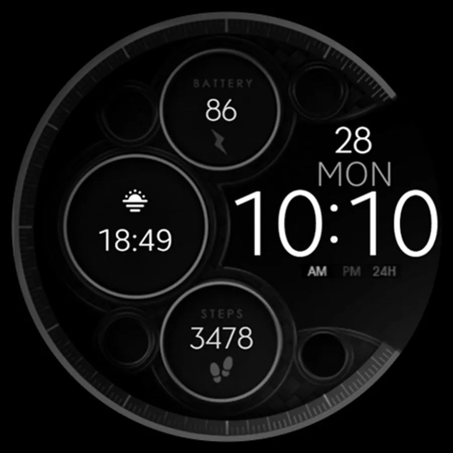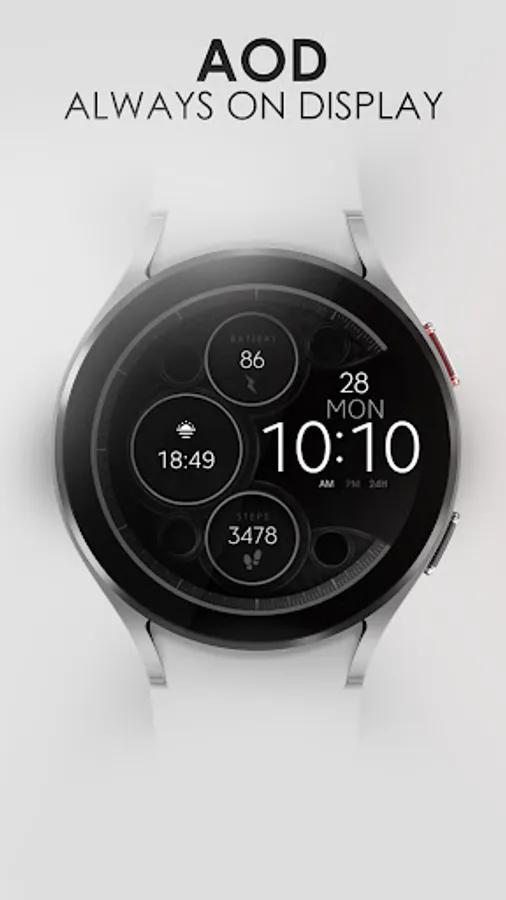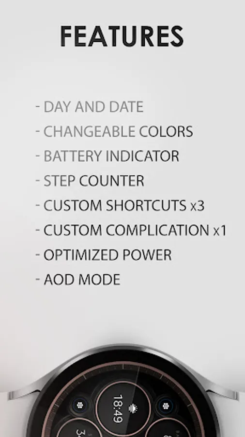 Add some style to your wrist with this modern, elegant, and sporty digital watch face. It features changeable colors, battery indicator, step counter, custom shortcuts and complication. Plus, it's optimized for power efficiency and has an AOD (always-on display) mode.
