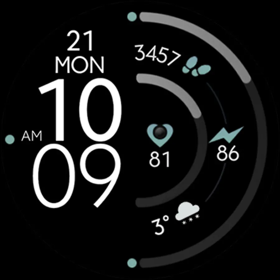 Minimal, Sporty and Modern Digital black Watch Face for Wear OS