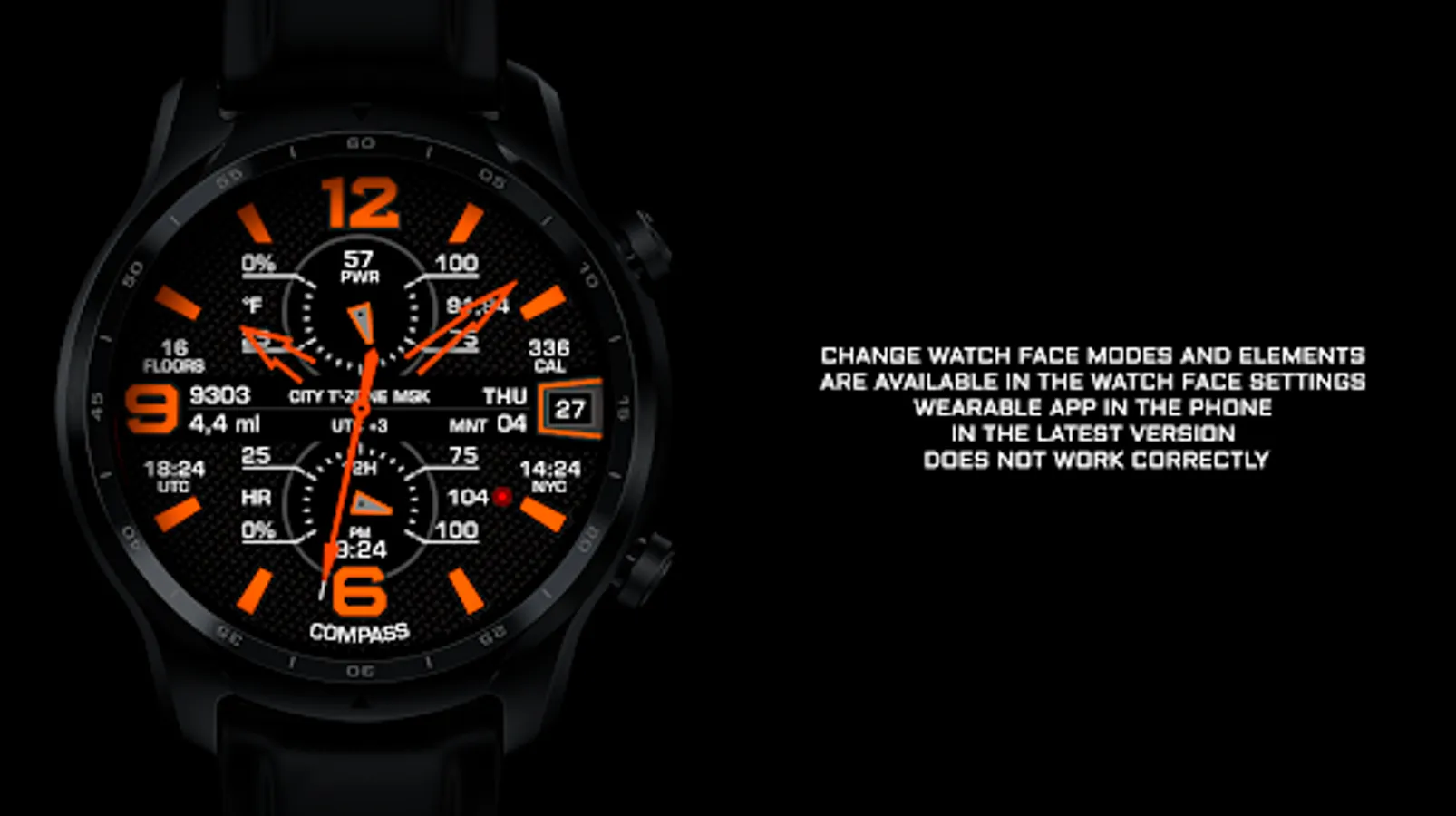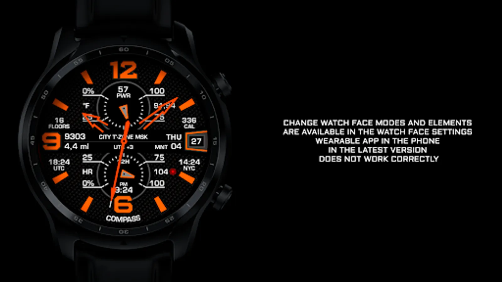 NOTE 3. All settings for the watch face are recommended to be performed in the watch !!! The Samsung Wearable app in the latest versions does not work correctly with the watch face settings !!!