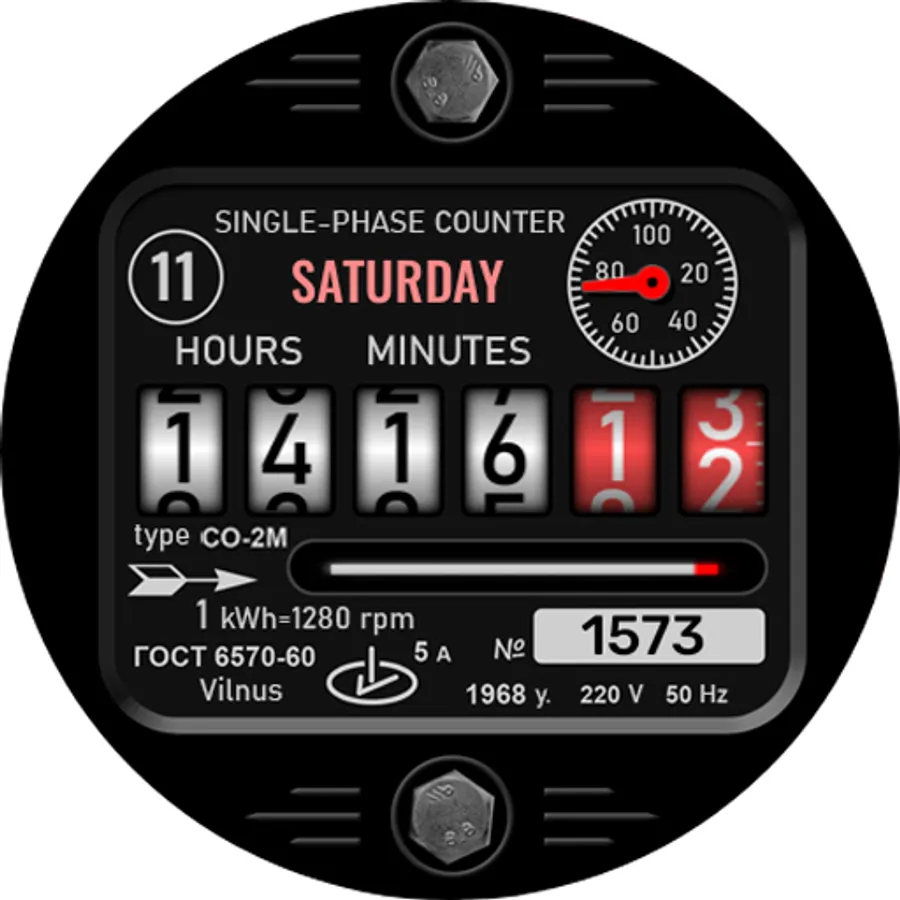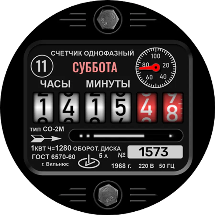 Do not be surprised that the date, day of the week, and number of steps taken are in such unusual places. I wanted the general entourage of the electric energy meter to be kept to the maximum. It is worth once to study where this data is located on the dial, and you can easily navigate it later.