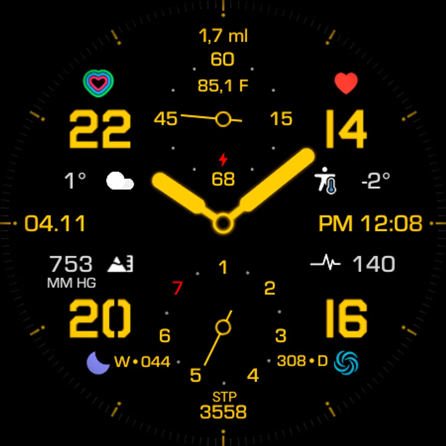 NOTE 2. For the correct display of the information - the watch face must be given permission to use the watch sensors. The watch face displays information from the sensors of the watch, the watch face itself does not generate any information. The watch face does not make any changes to system files, does not change any system settings and user settings, only displays information. Does not collect, transmit or receive any outside data.
