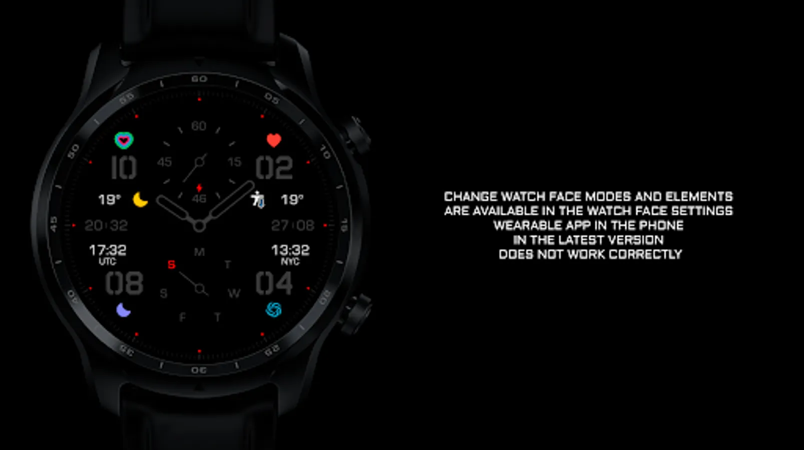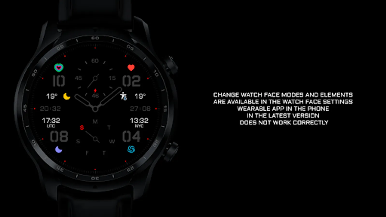 All settings for the watch face are recommended to be performed in the watch !!! The Samsung Wearable app or other watch brand apps in phone sometimes does not work correctly with the watch face settings !!!