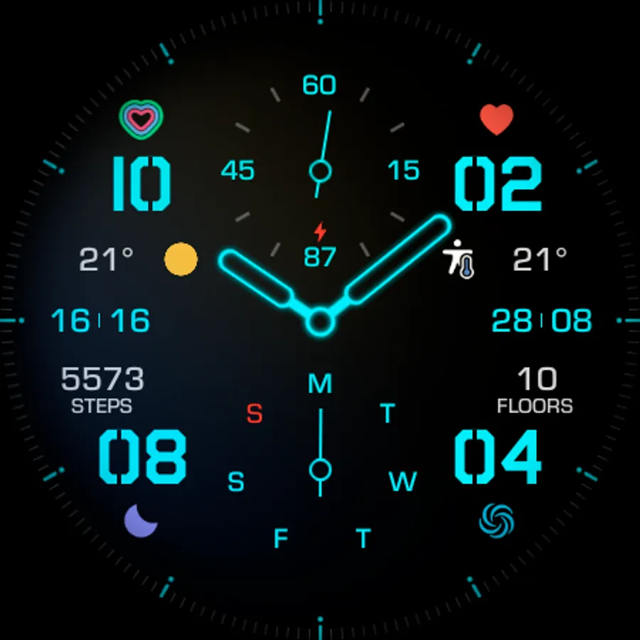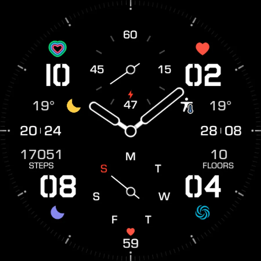 Some information and graphics elements are disabled or enabled by default(you can turn it on or off in the watch face settings).