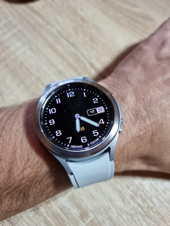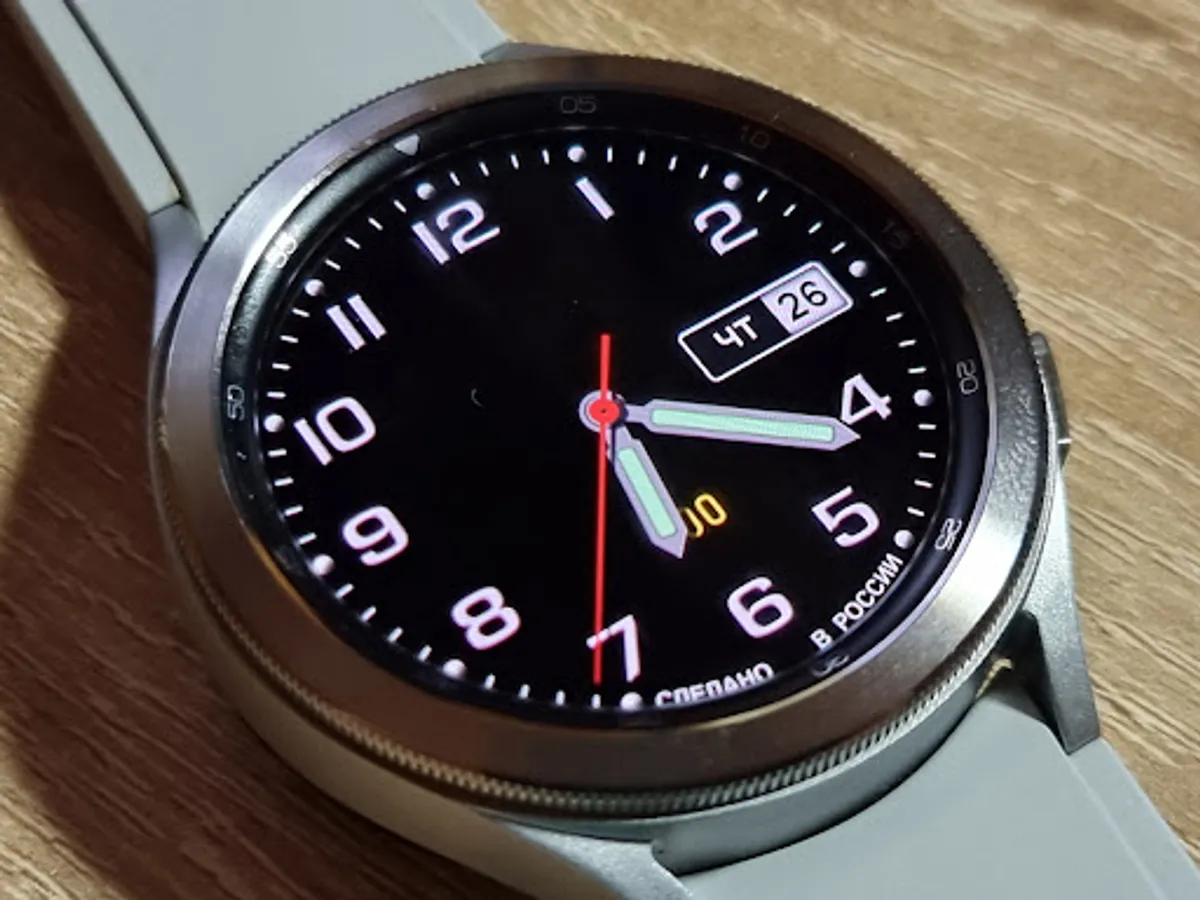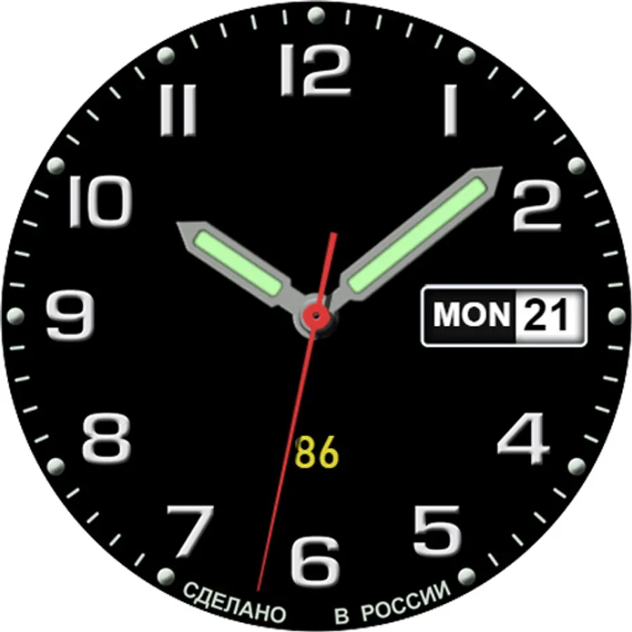 - The date and day of the week are displayed in Russian and English (English is the priority and is shown if the smartphone menu is not installed in Russian)