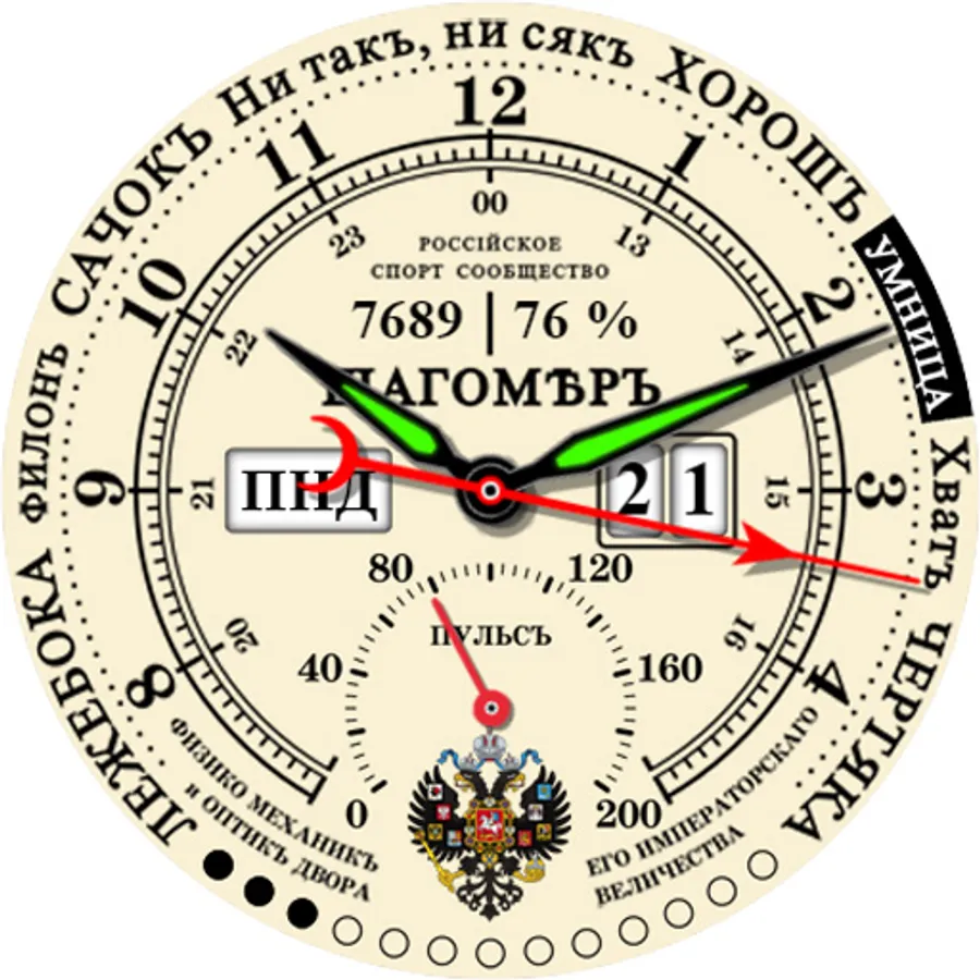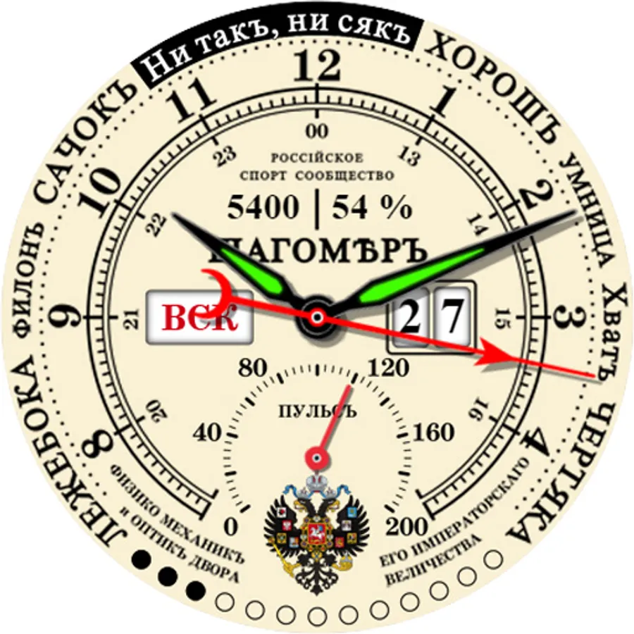 The Pre-Revolutionary Pedometer dial supports the following features: