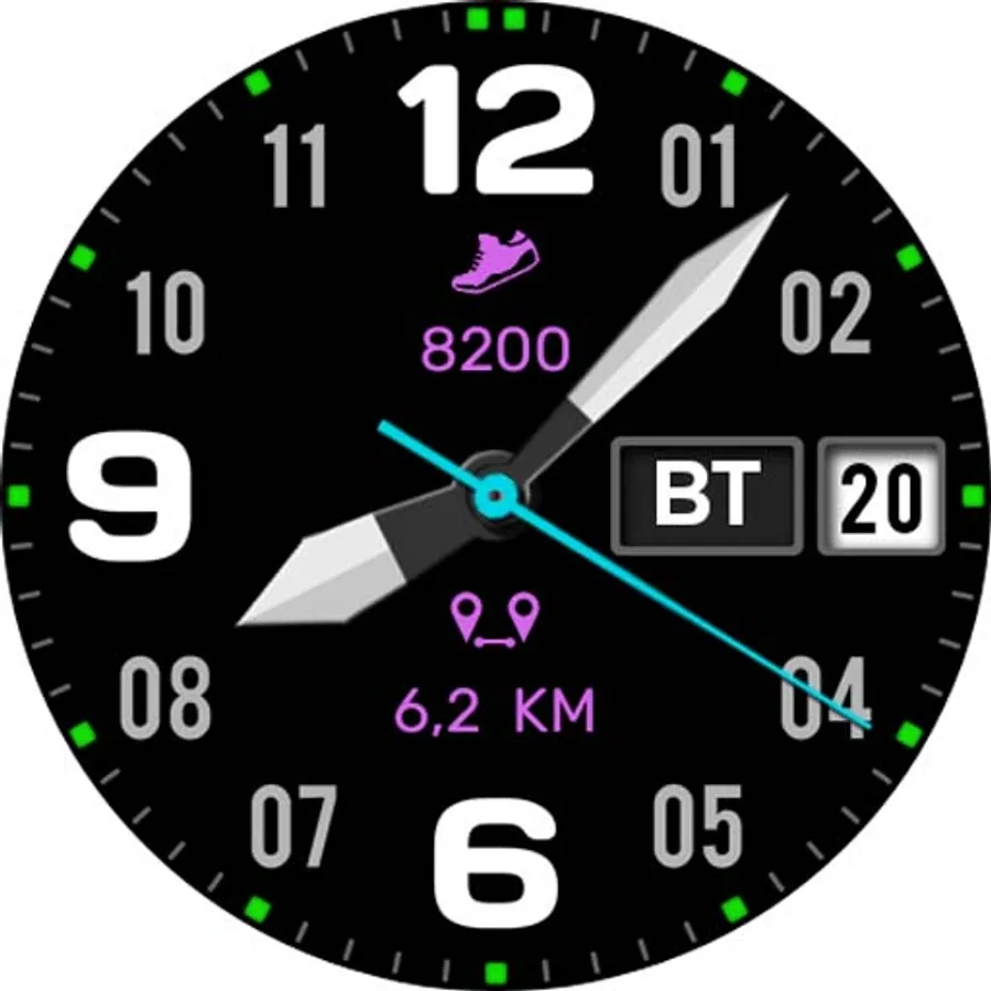 - Large hour markers and hands let you instantly know what time it is without having to stare at the screen