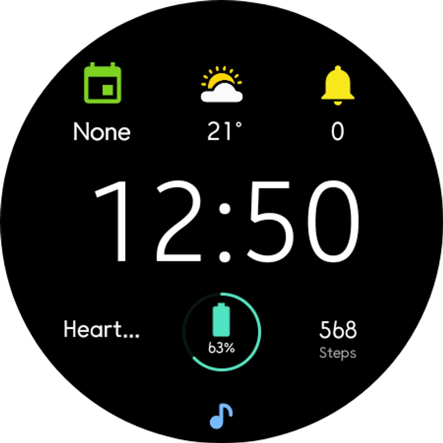 A minimalistic watch face inspired by Essential Digital. Multiple places to add custom compotents like weather, battery, heart rate or a calander.