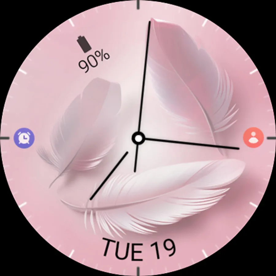 Introducing “Feathers Pink”, a modern and simple analog watch face designed for Wear OS smartwatch. This watch face stands out with its pastel pink background adorned with delicate feathers, offering a unique blend of style and functionality.