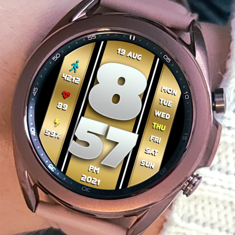 This Watch Face comes with very big numbers to see it clearly and Sporty Design available for Wear OS. With numbers of Steps and Heart Rate that will refresh realtime.