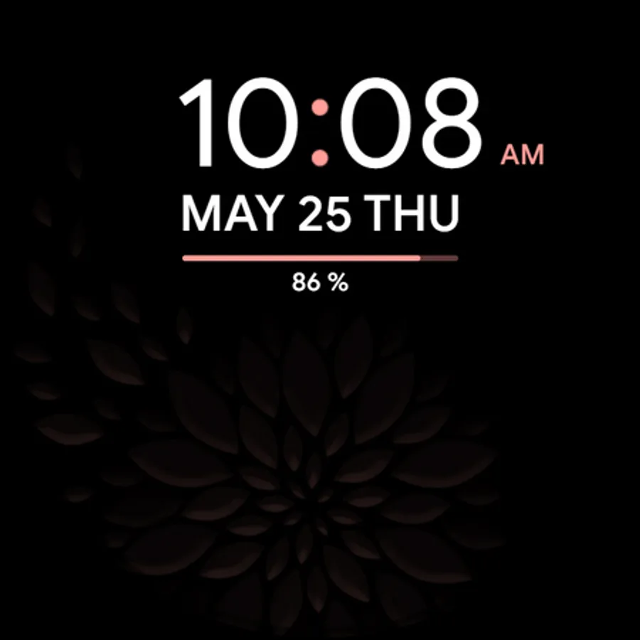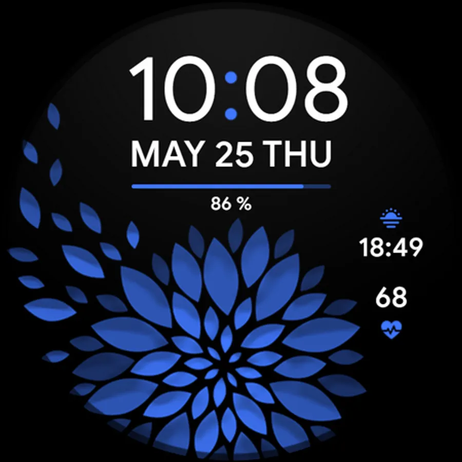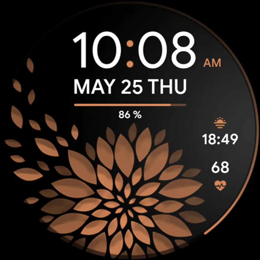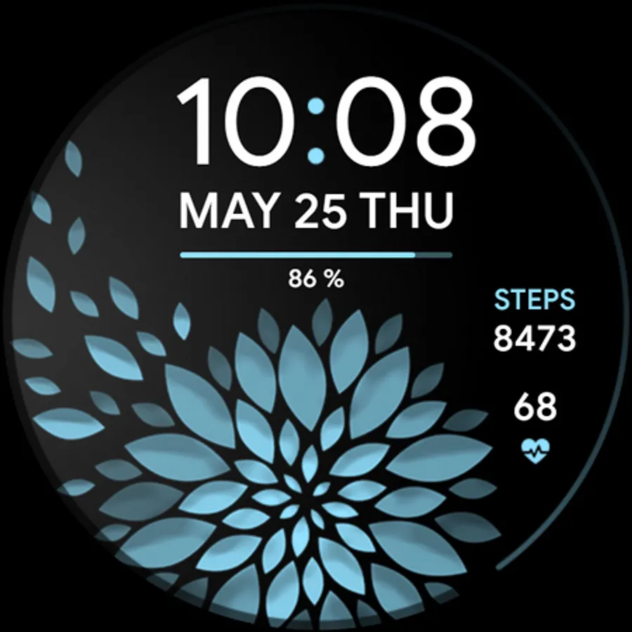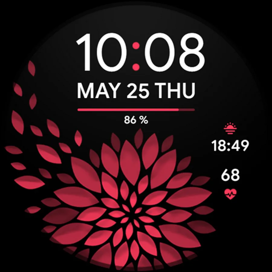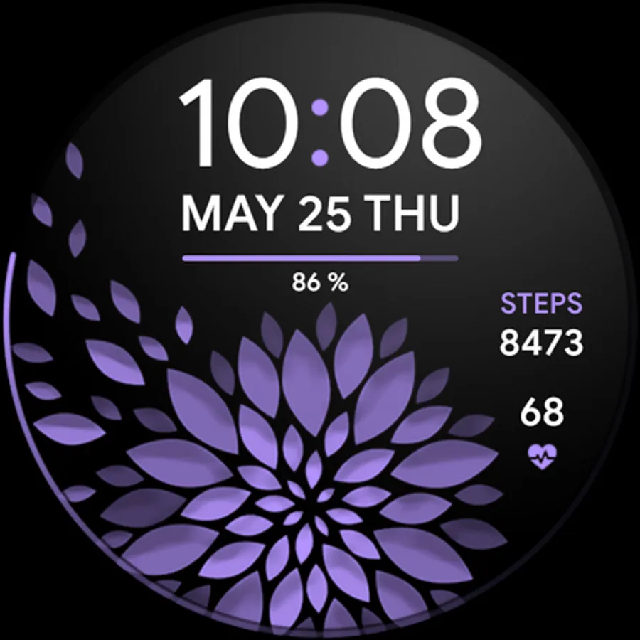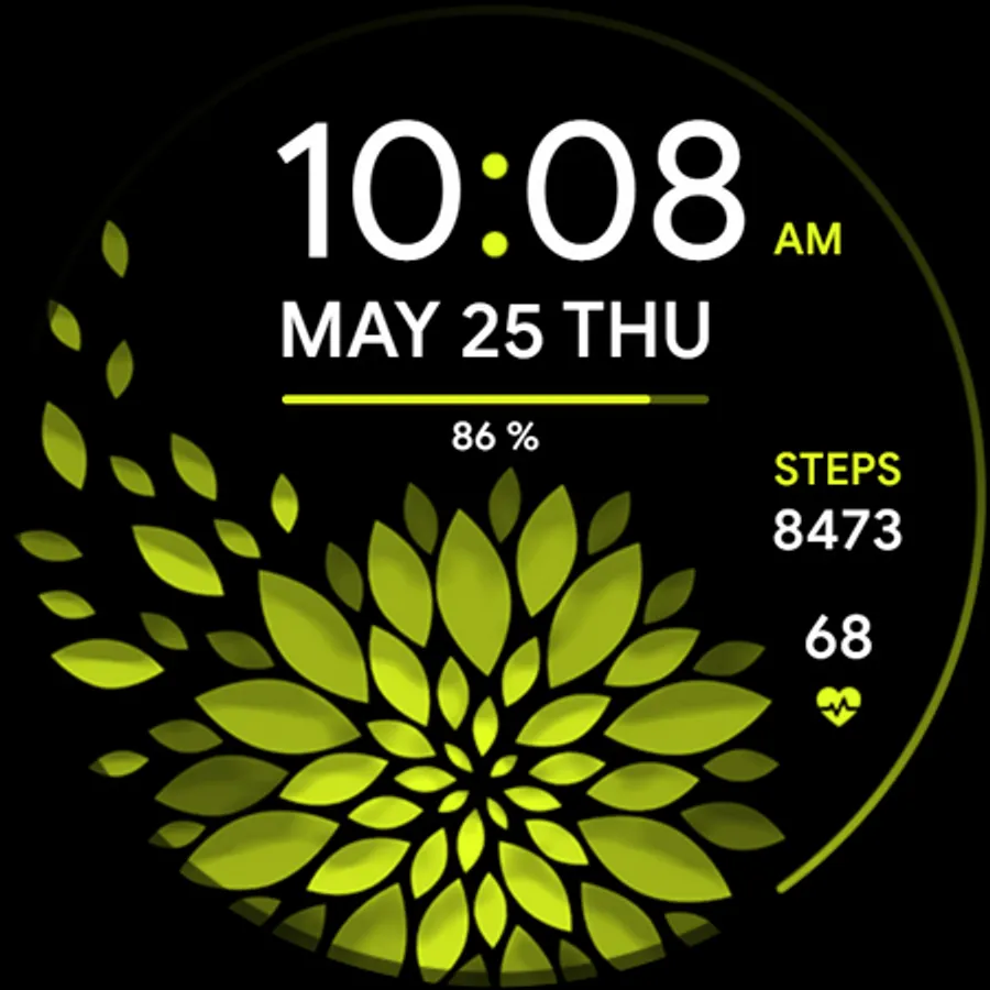 - 4 Custom app shortcuts - Hour indicator, Minutes indicator, Flower center, and Petals on the left