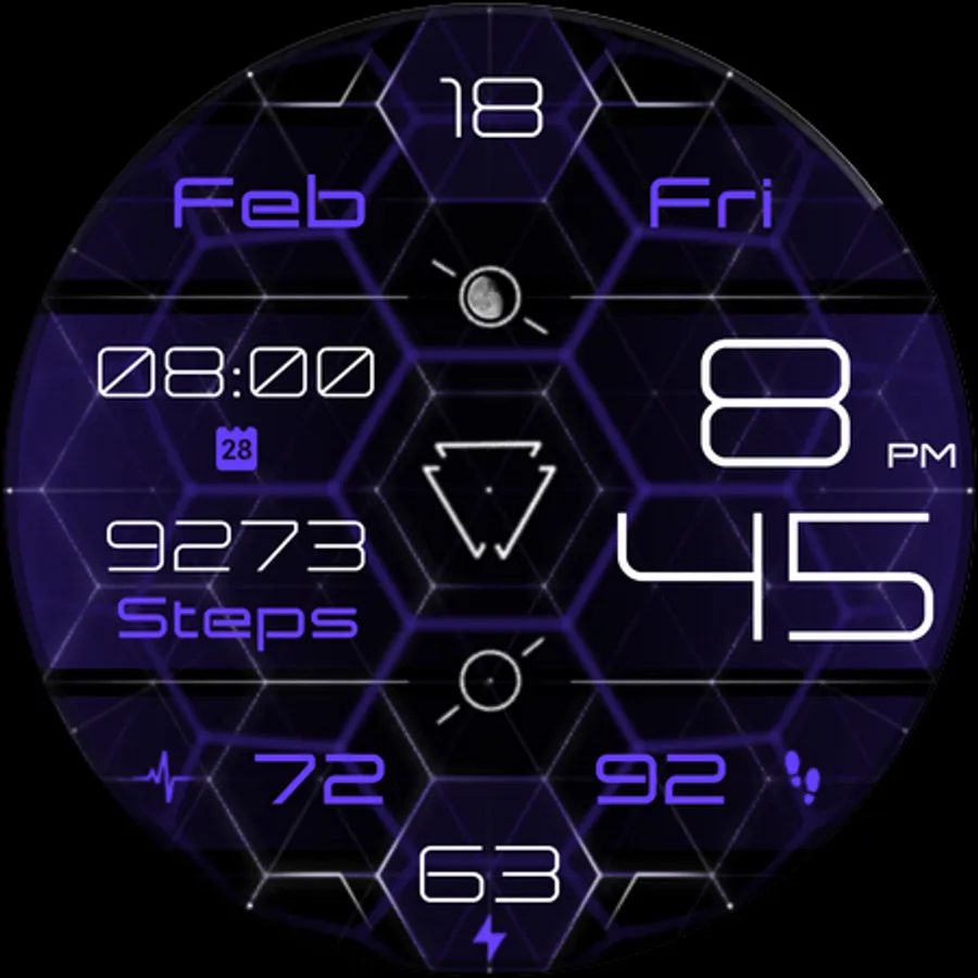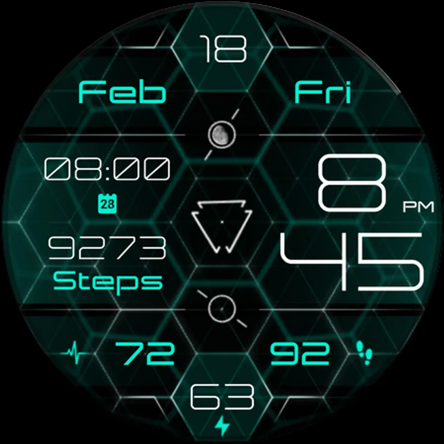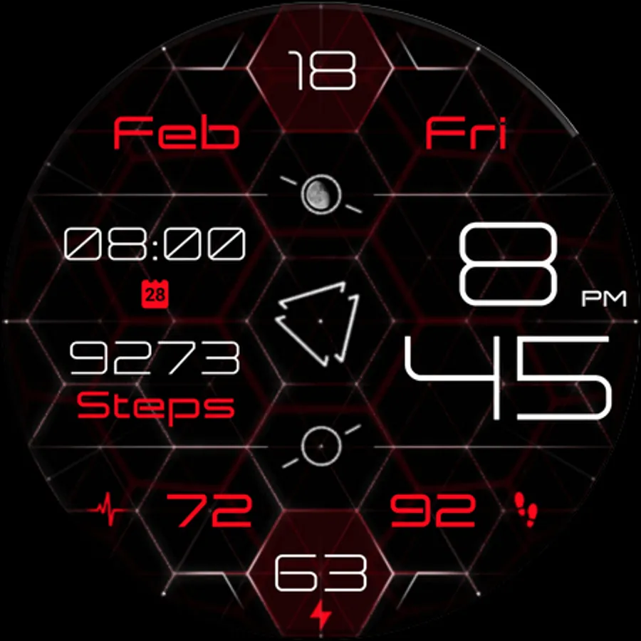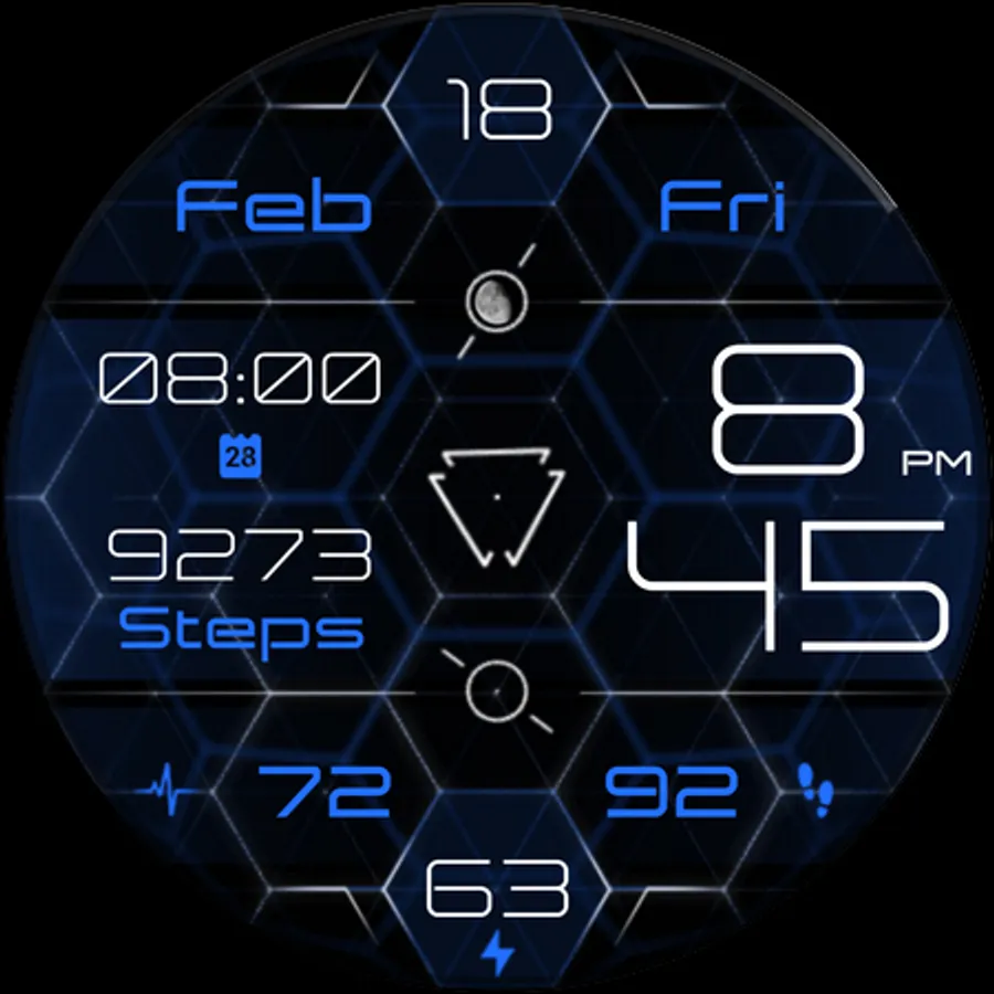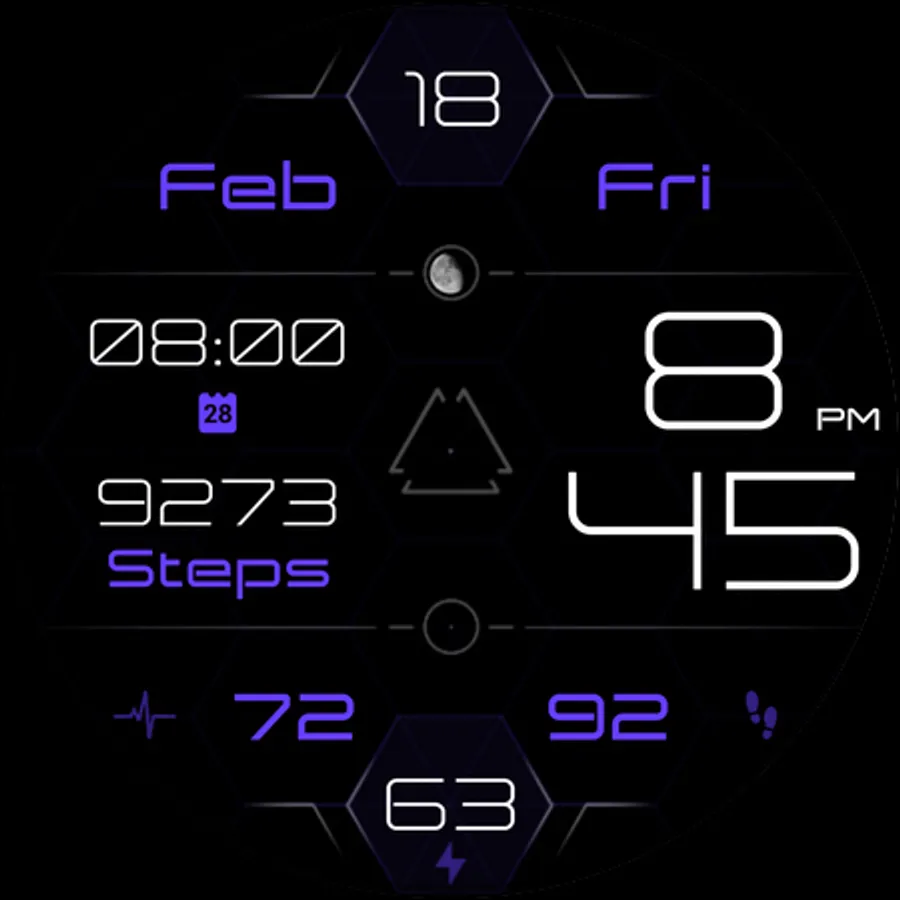 - Moon phase indicator at the top center