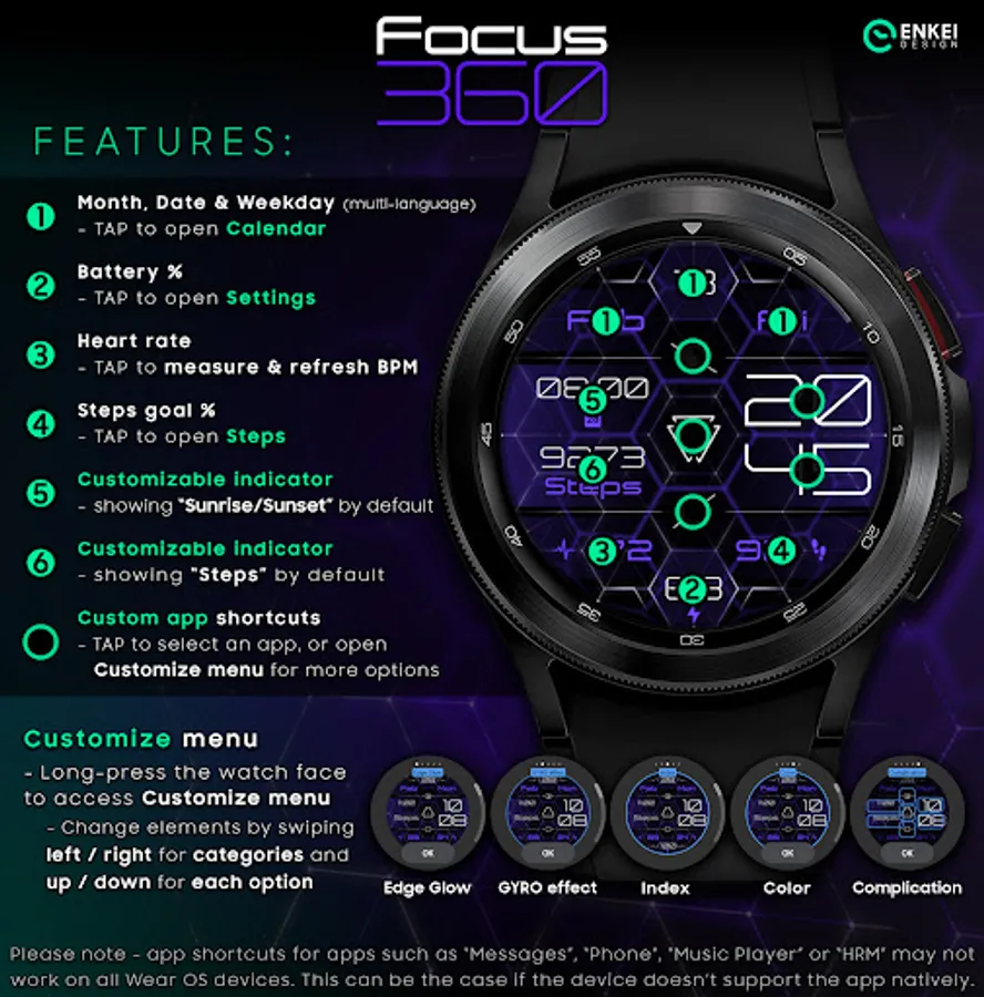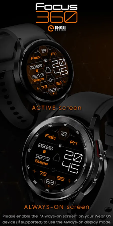 Unique modern, digital & animated design for Wear OS - Focus 360 !