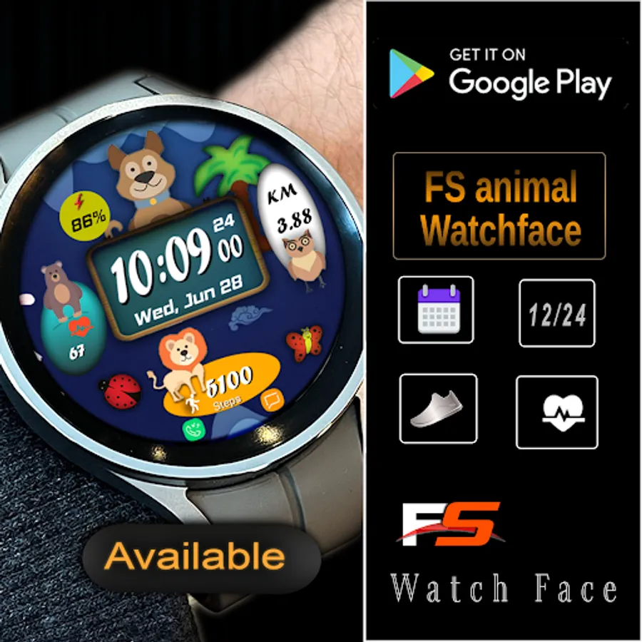 The FS Animal Watch face is a Digital watch Face for Wear OS by FS Design