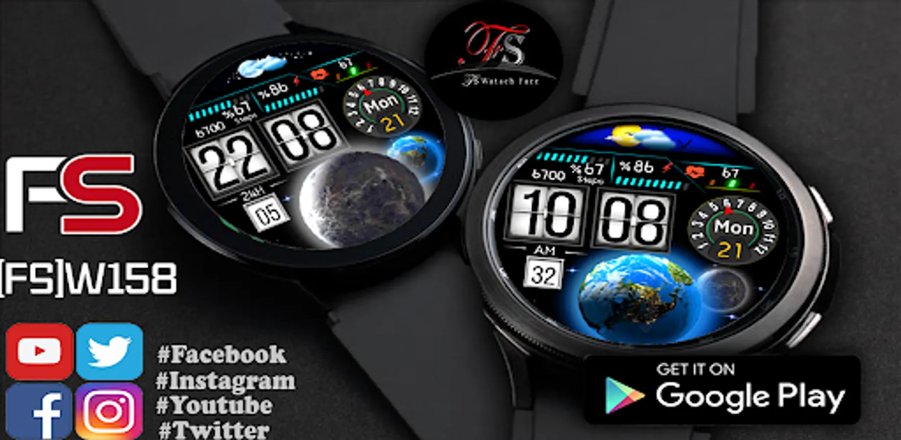 The FSW158 is an Digital watch Face for Wear OS by FS Design
