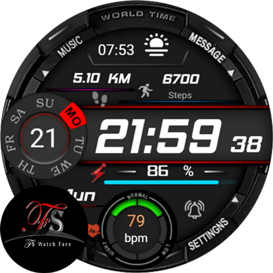 The FSW202 is an Digital and analog watch Face for Wear OS by FS Design