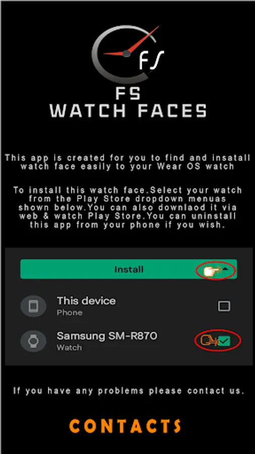 4.Select watch face and click ''Install'