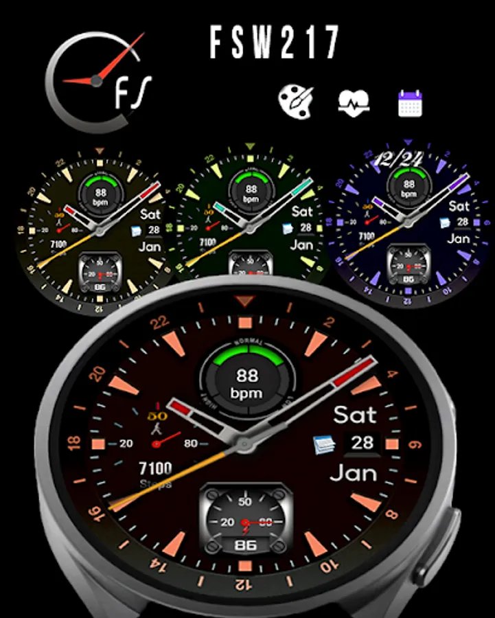 The FSW217 is a Digital and analog watch Face for Wear OS by FS Design