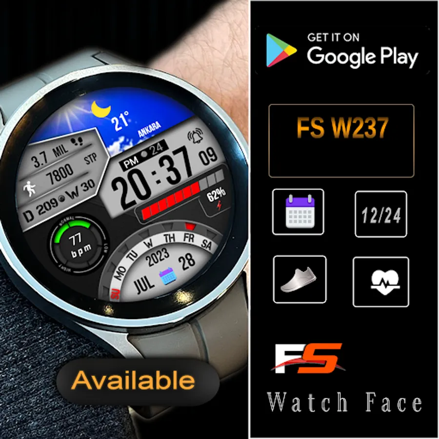 The FS W237 Watch face is a Digital watch Face for Wear OS by FS Design