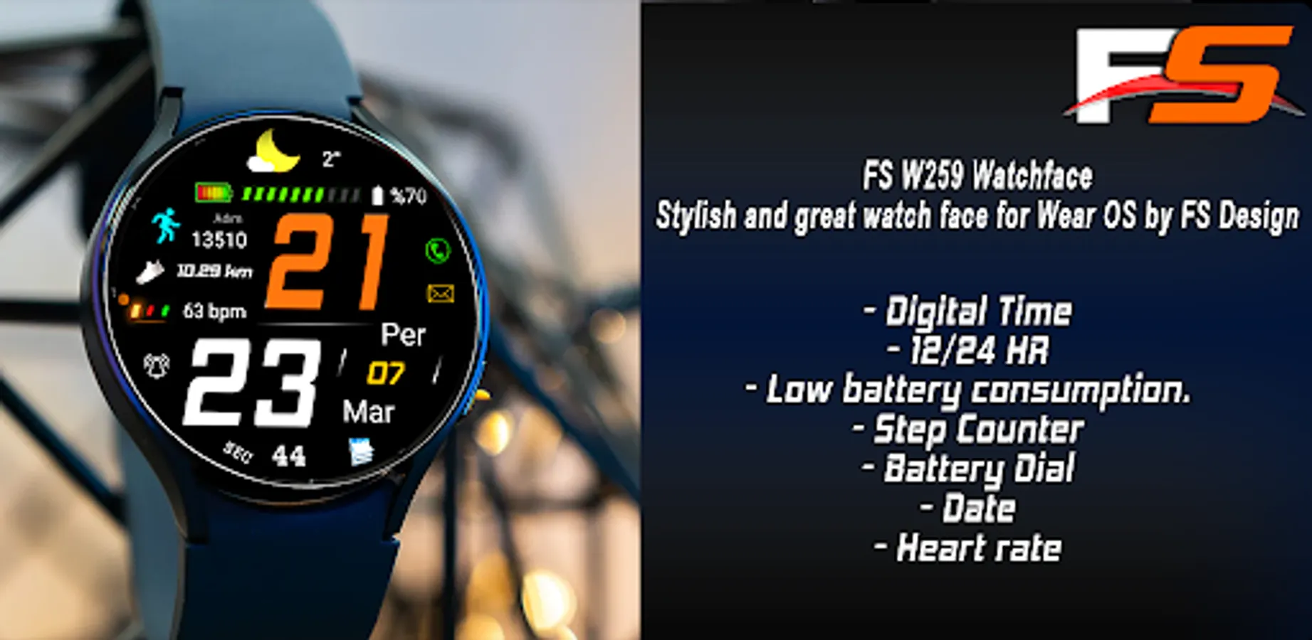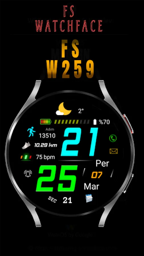FSW259 Watchface is a Digital watch Face for Wear OS by FS Design