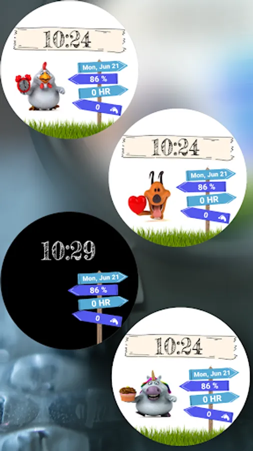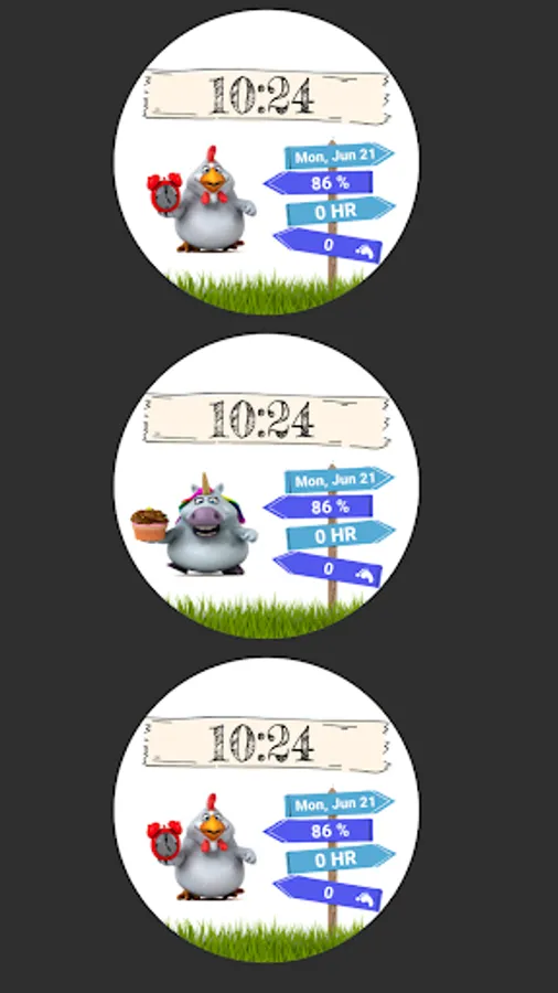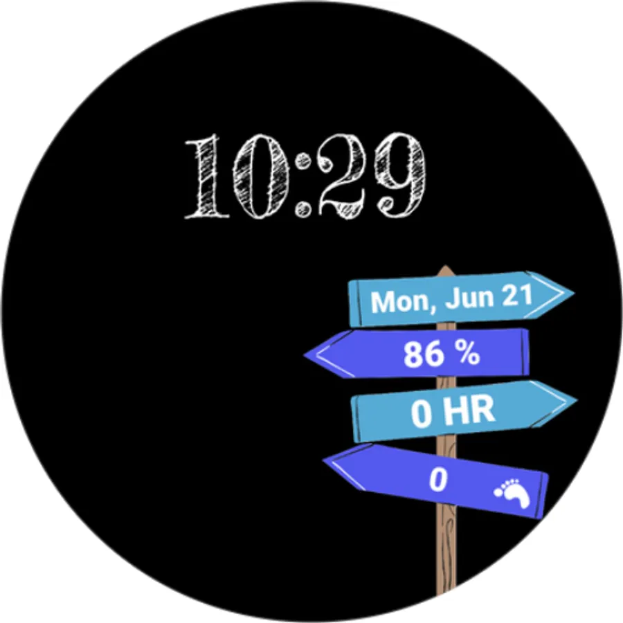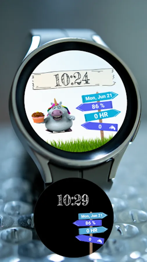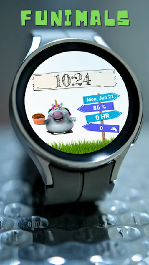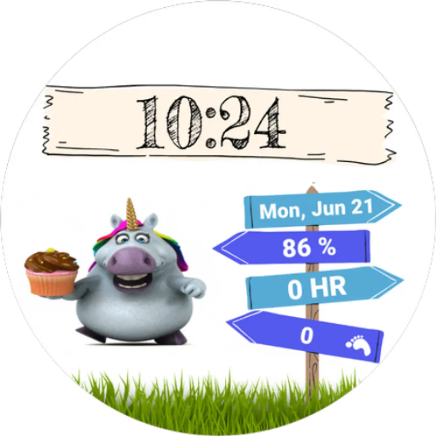 An ANIMATED face with 3 cute characters that can be changed to your liking. The watch has some great info that is easily visible on the sign post next to your favourite character.