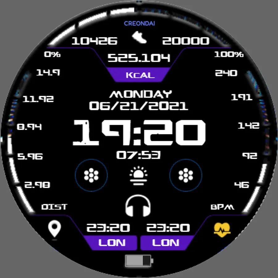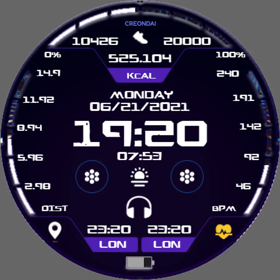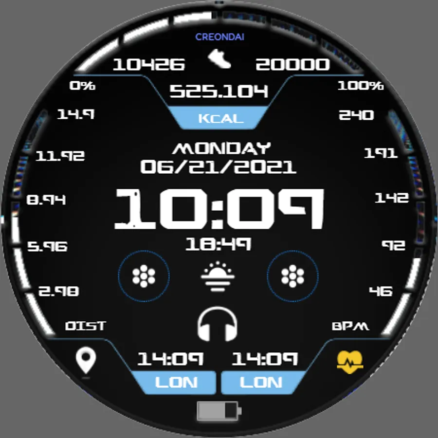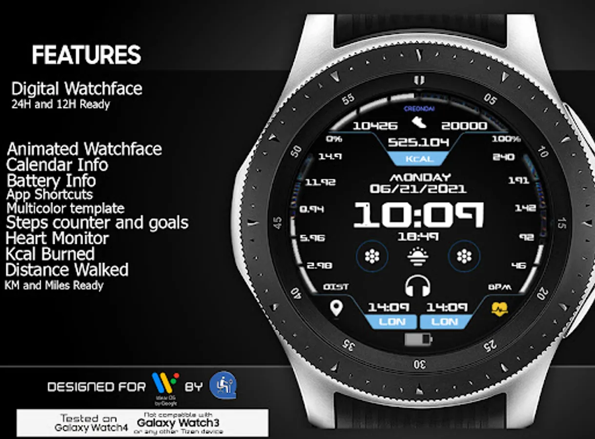 The Future Sports is a cool and animated digital watchface for Wear OS by Creondai's Group. It contains 2 customizable shortcut, customizable complications, steps and step goals, heart rate, and much more...