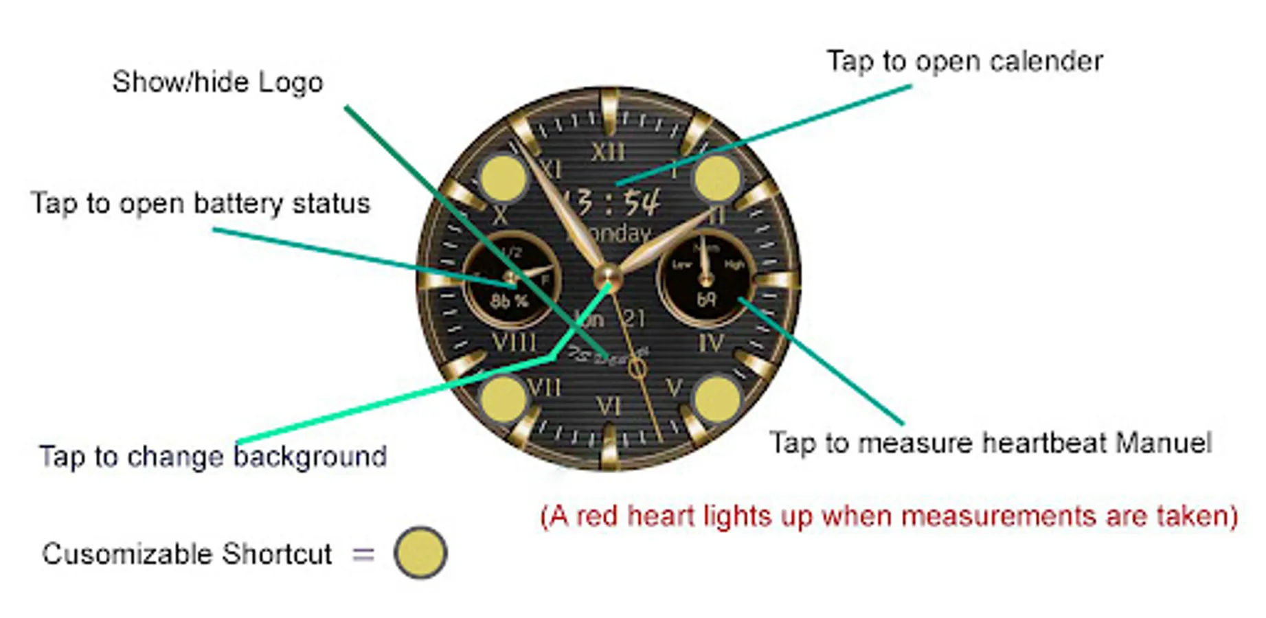 - Analog and Digital Heartrate (Result is not saved in any app)